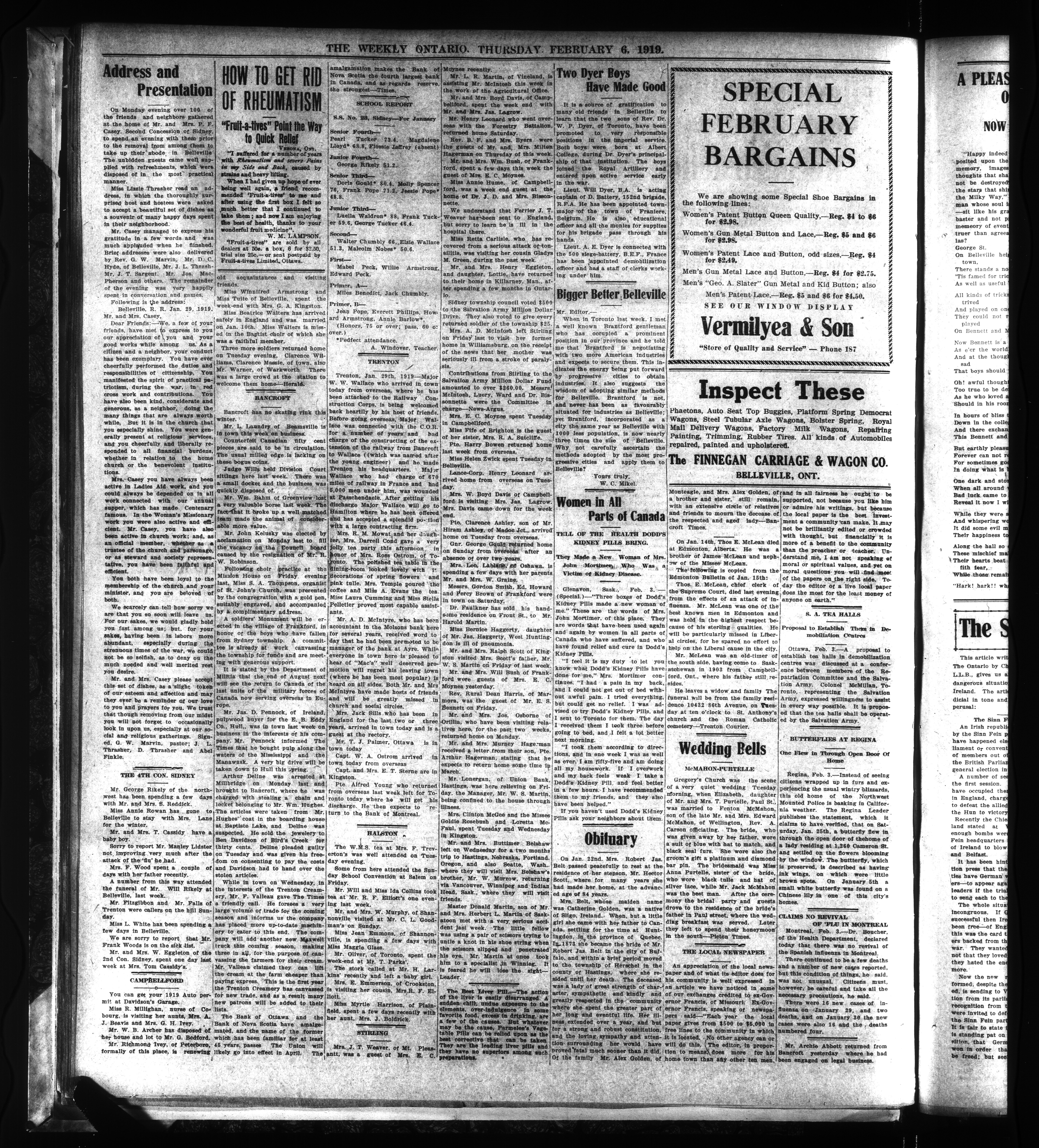 The Weekly Ontario and Bay of Quinte chronicle : Febraury 6, 1919