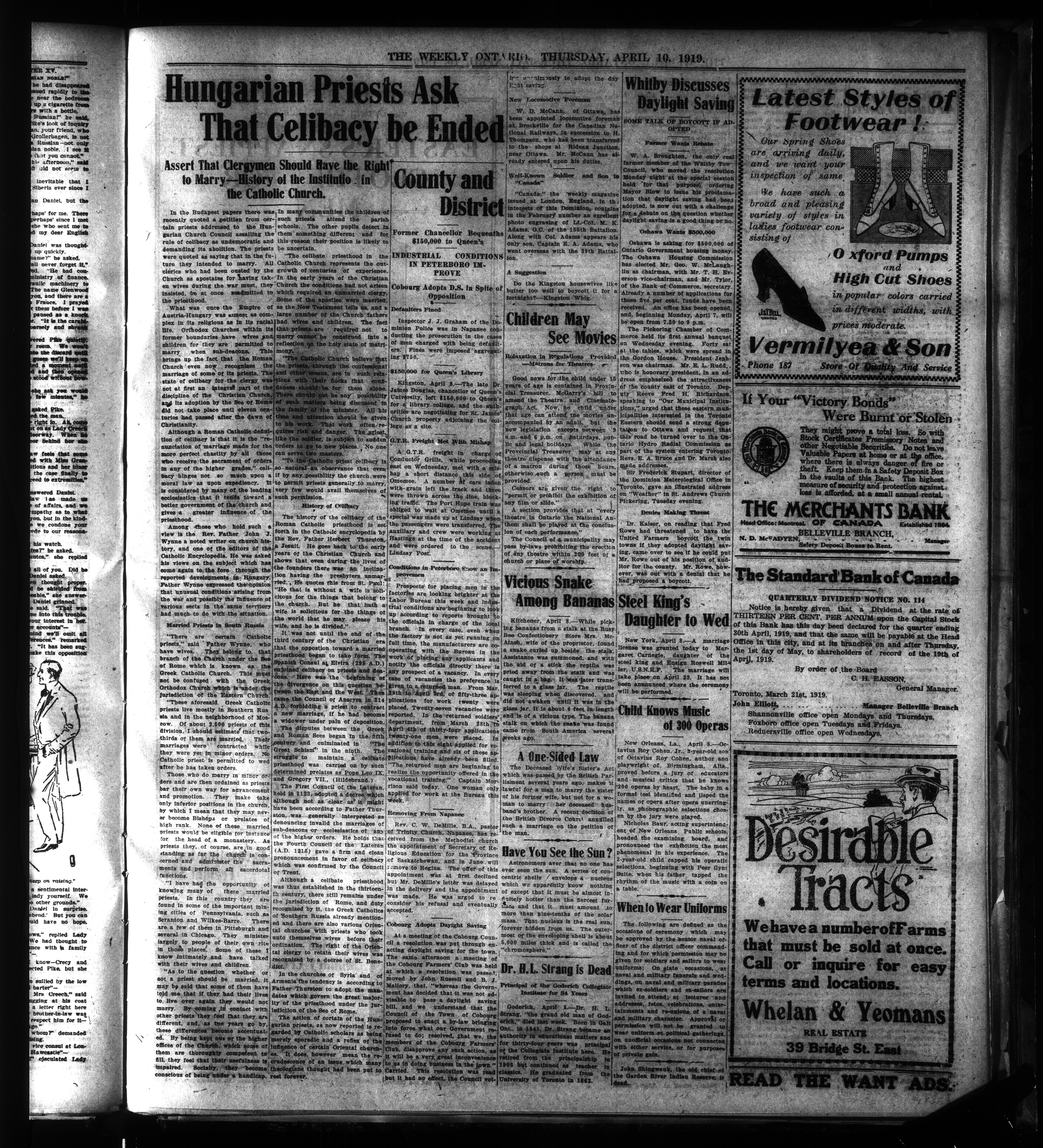 The Weekly Ontario and Bay of Quinte chronicle : April 10, 1919