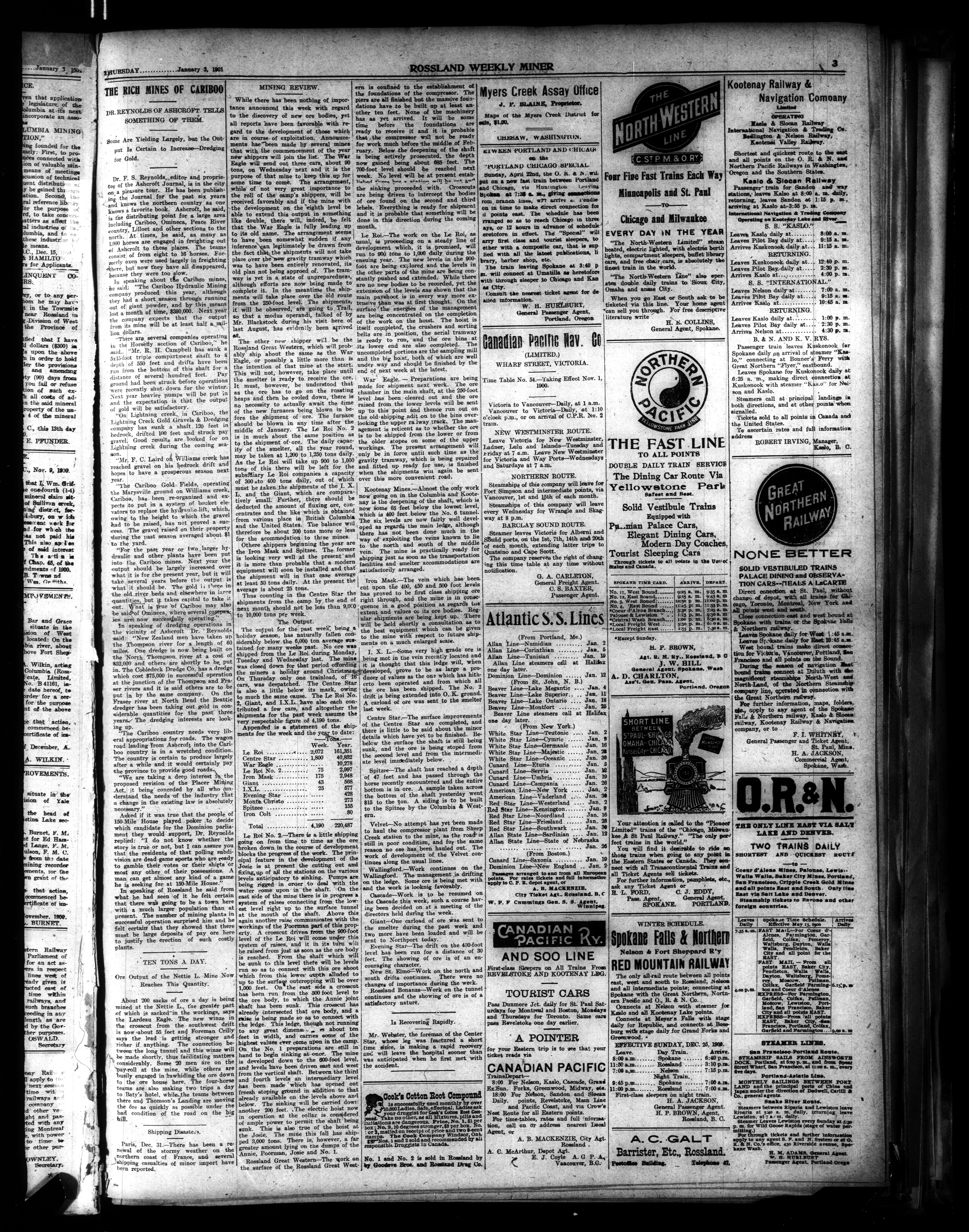 Rossland Weekly Miner : Sixth Year, Number 10 (January 3, 1901)