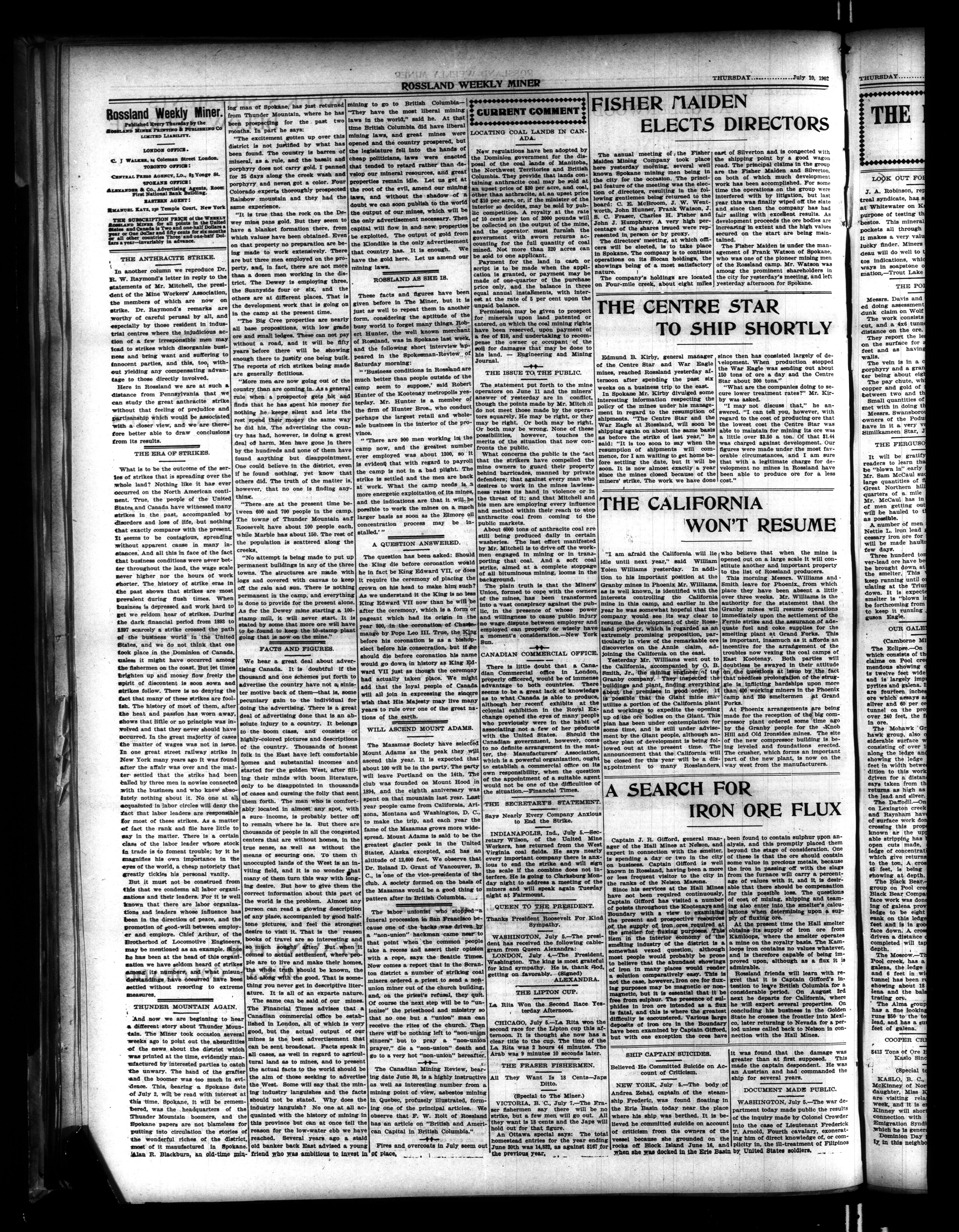 Rossland Weekly Miner : Seventh Year, Number 37 (July 10, 1902)
