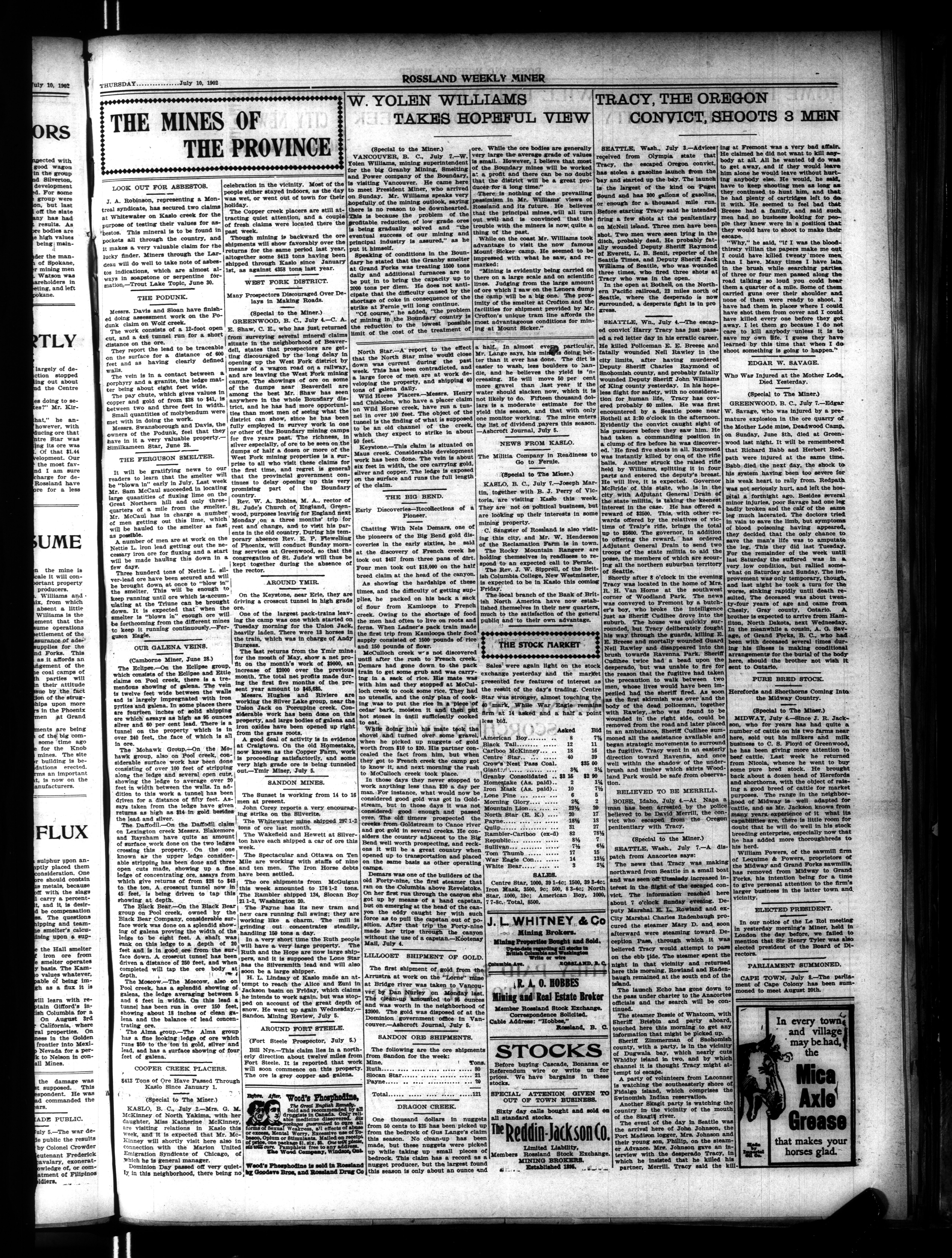 Rossland Weekly Miner : Seventh Year, Number 37 (July 10, 1902)