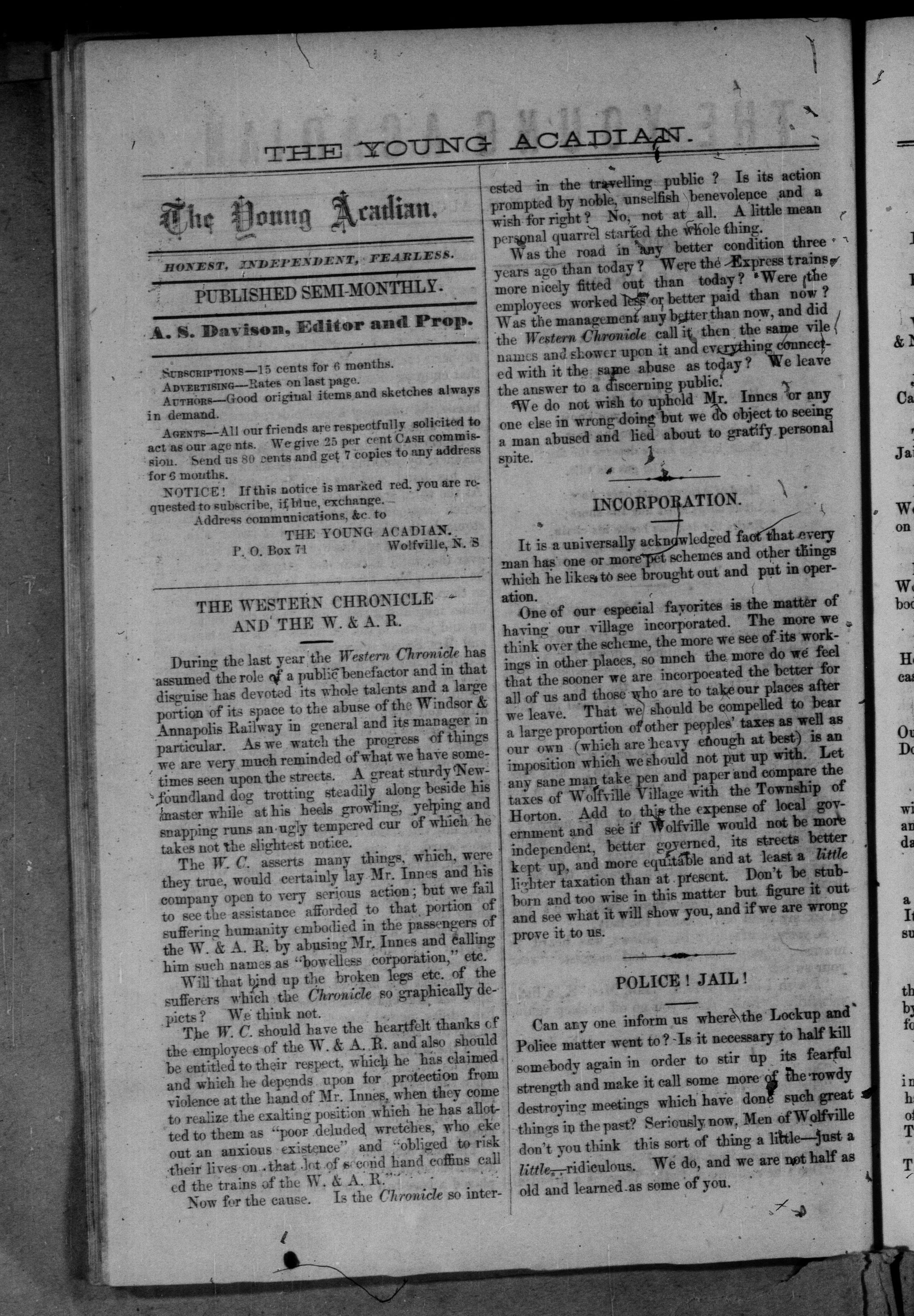 Wolfville, N.S. : A.S. Davison, Editor and Proprietor, [1883]; 6 images avec recherche en texte intégral