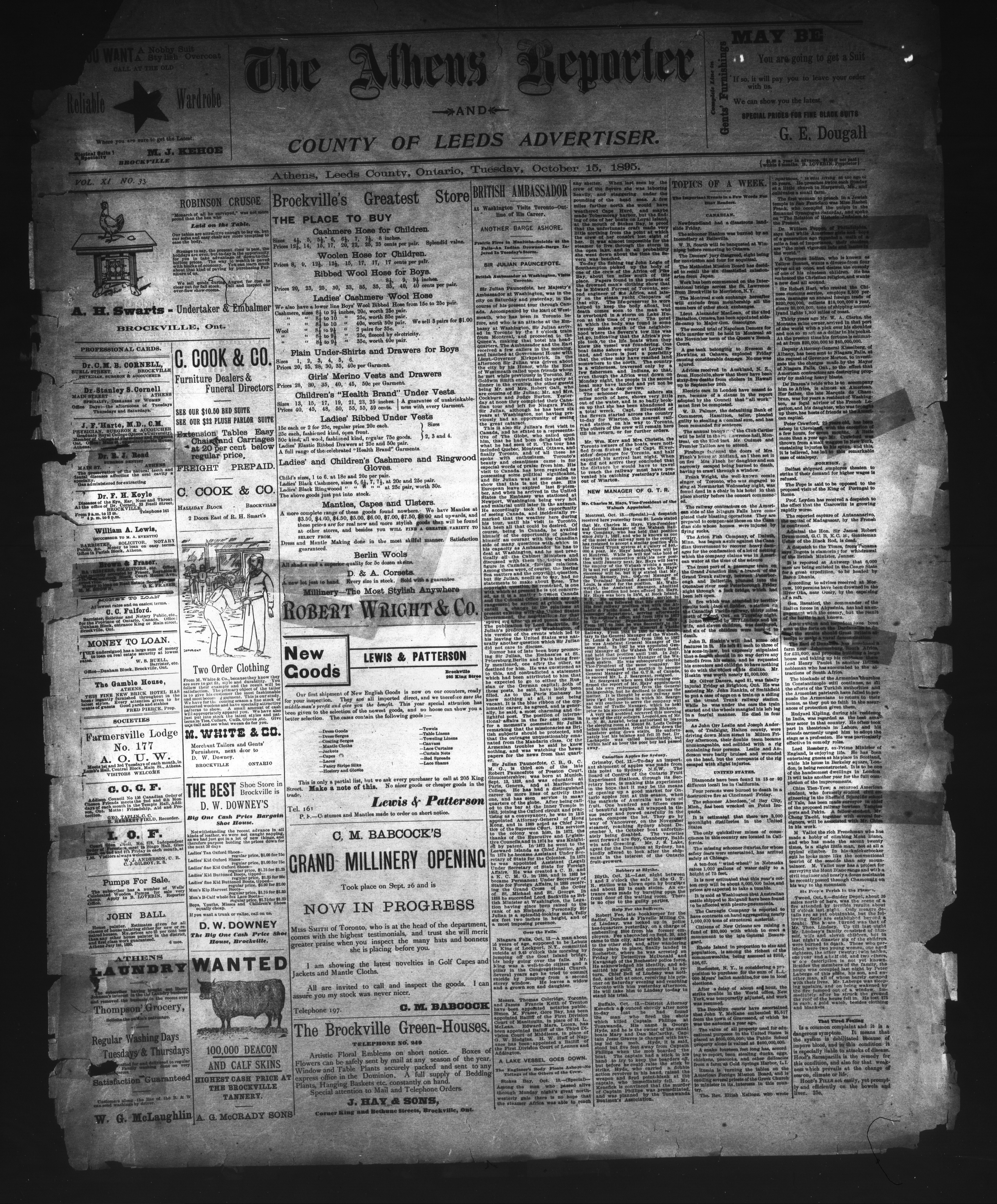 The Athens reporter & County of Leeds advertiser : Vol. XI, No. 33 [i.e. 40] (October 15, 1895)