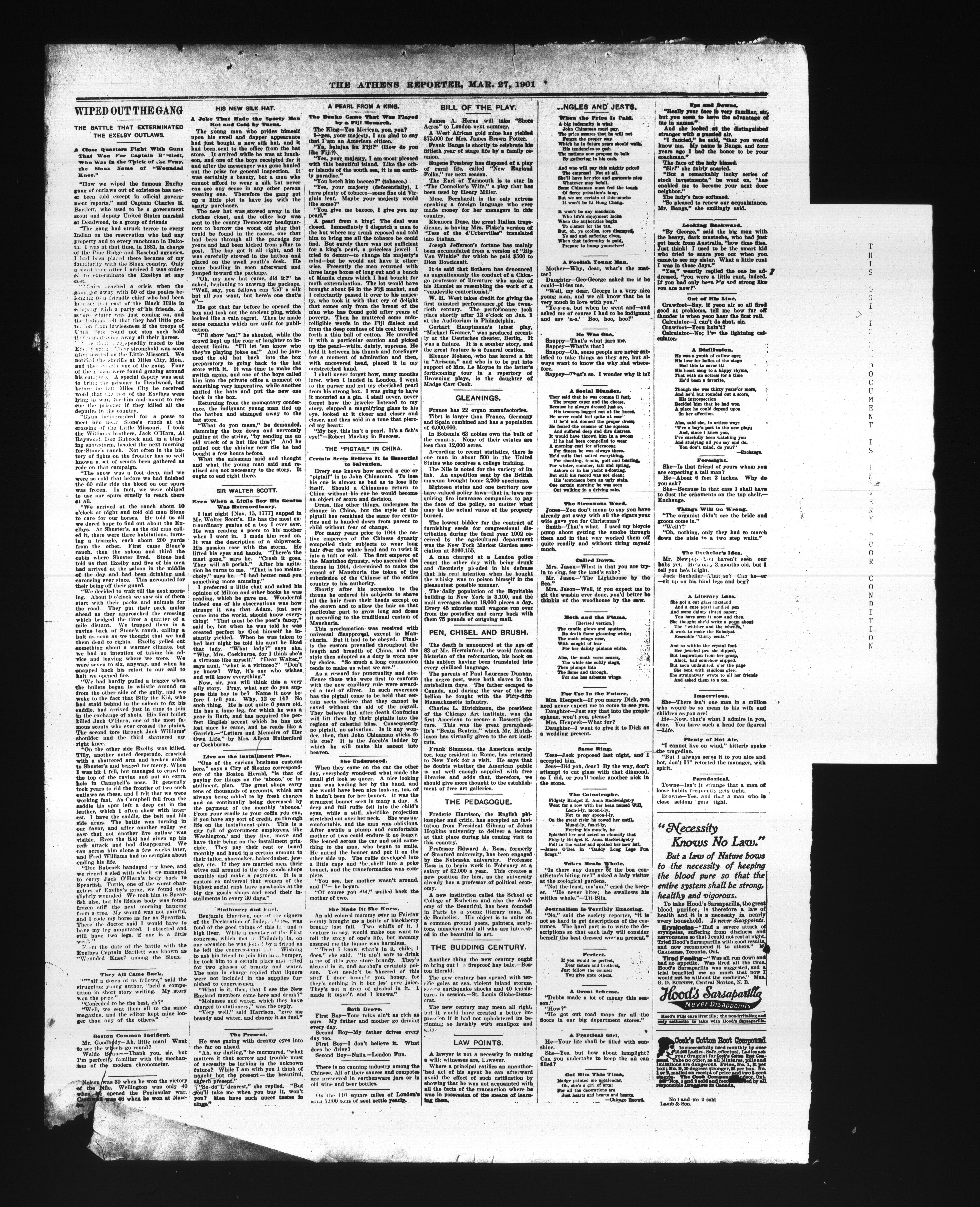 The Athens reporter & County of Leeds advertiser : Vol. XVII, No. 13 (March 27, 1901)