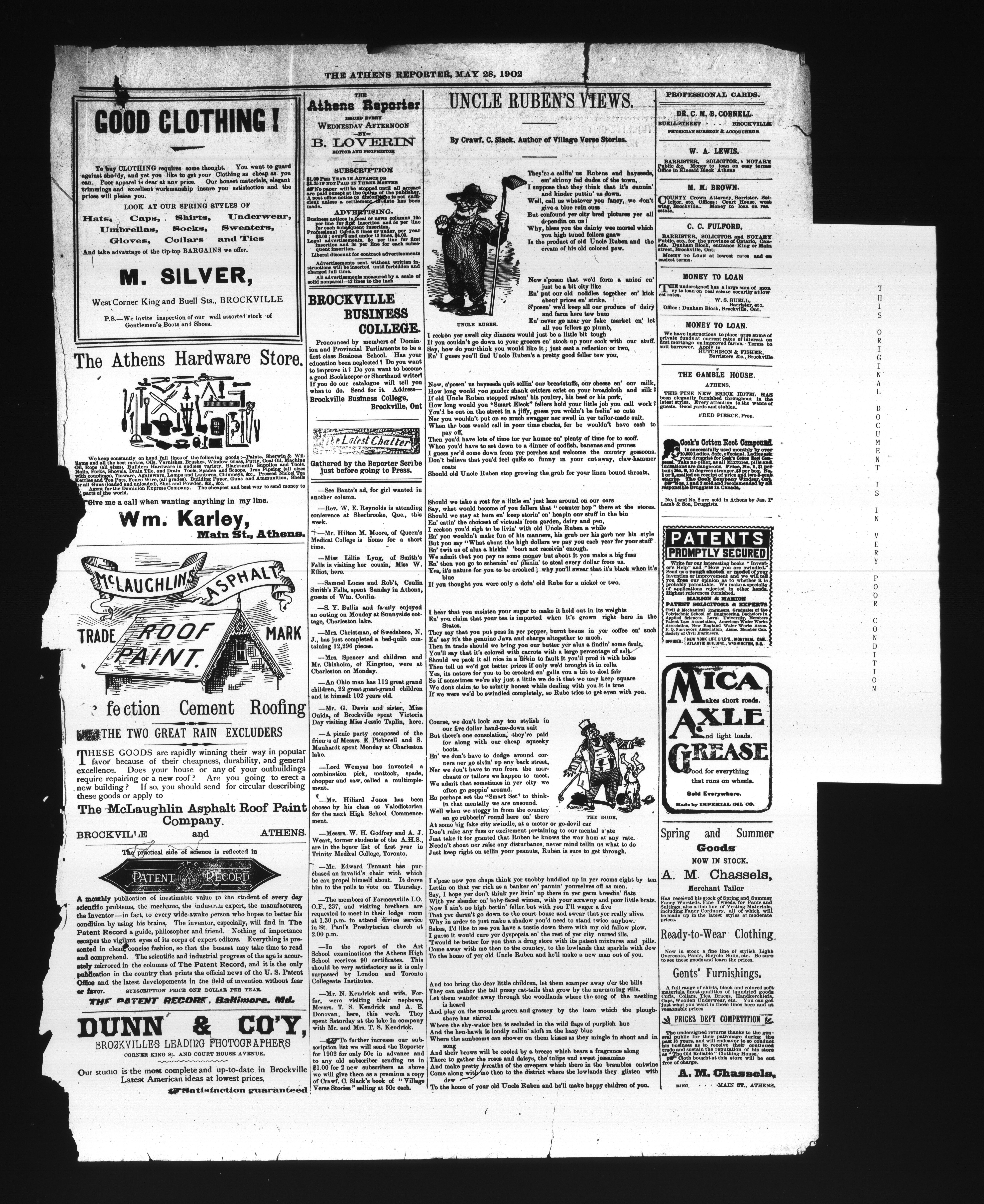 The Athens reporter & County of Leeds advertiser : Vol. XVIII, No. 21 [i.e. 22] (May 28, 1902)