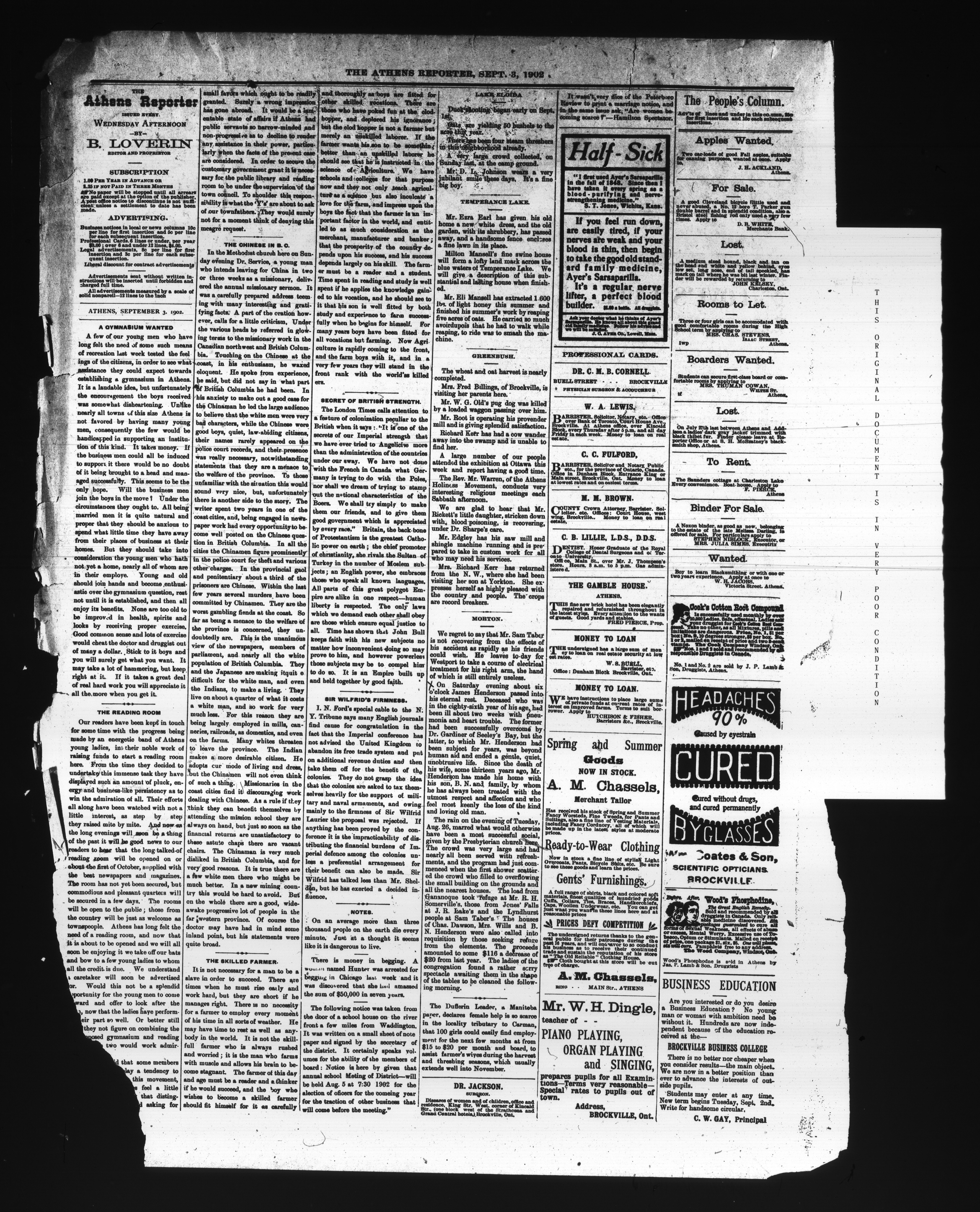 The Athens reporter & County of Leeds advertiser : Vol. XVIII, No. 36 (September 3, 1902)