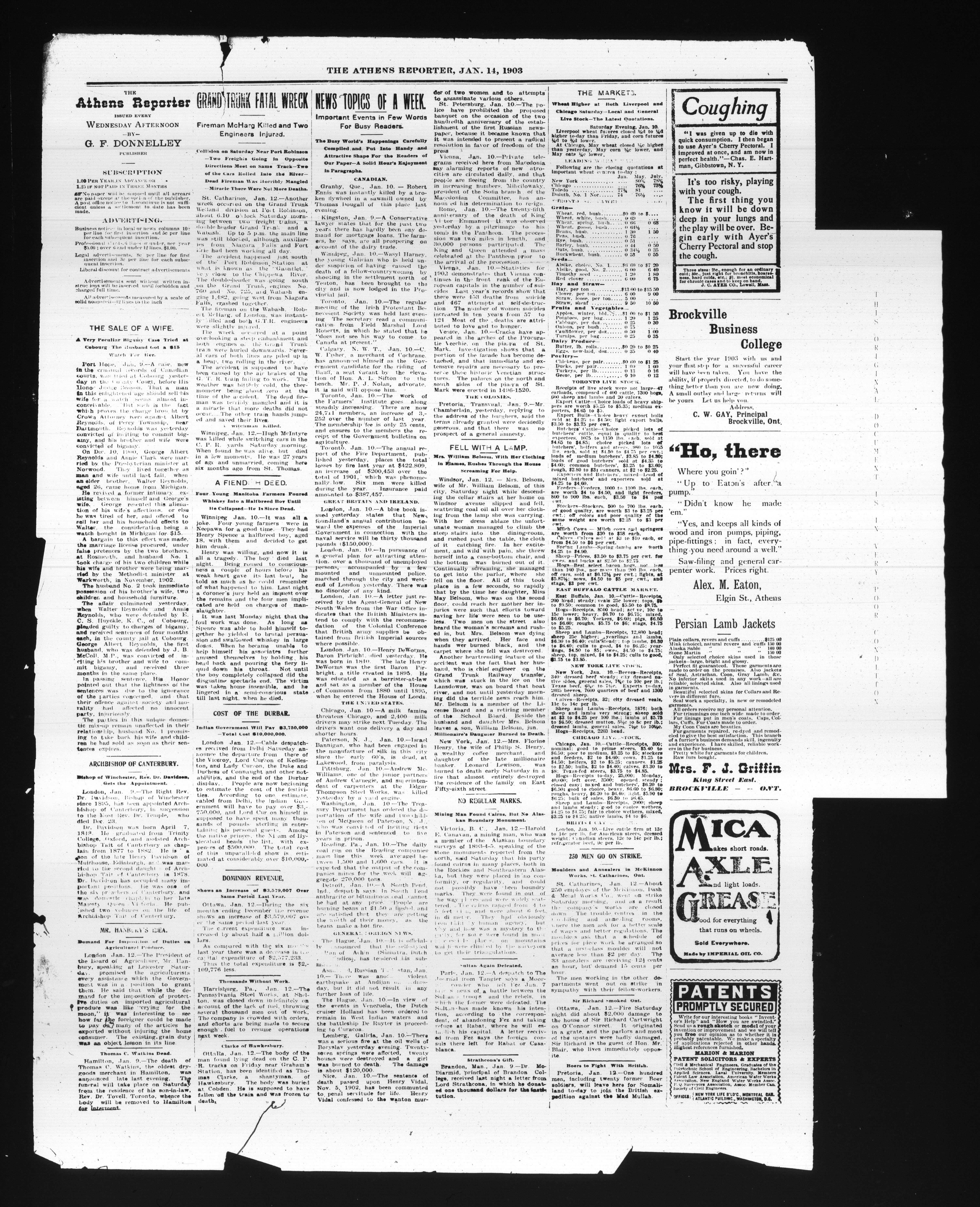 The Athens reporter & County of Leeds advertiser : Vol. XIX, No. 2 (January 14, 1903)