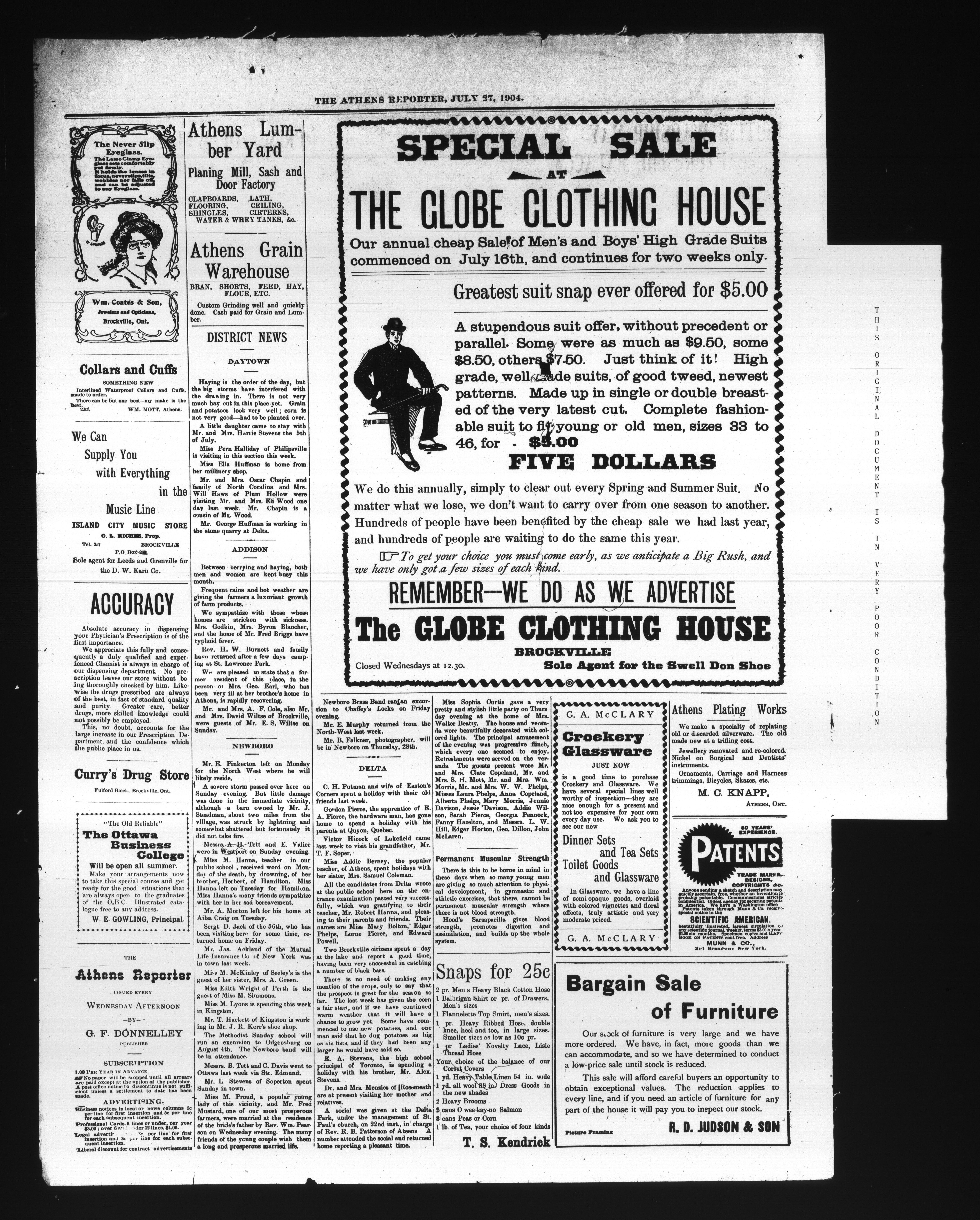 The Athens reporter & County of Leeds advertiser : Vol. XX, No. 30 (July 27, 1904)