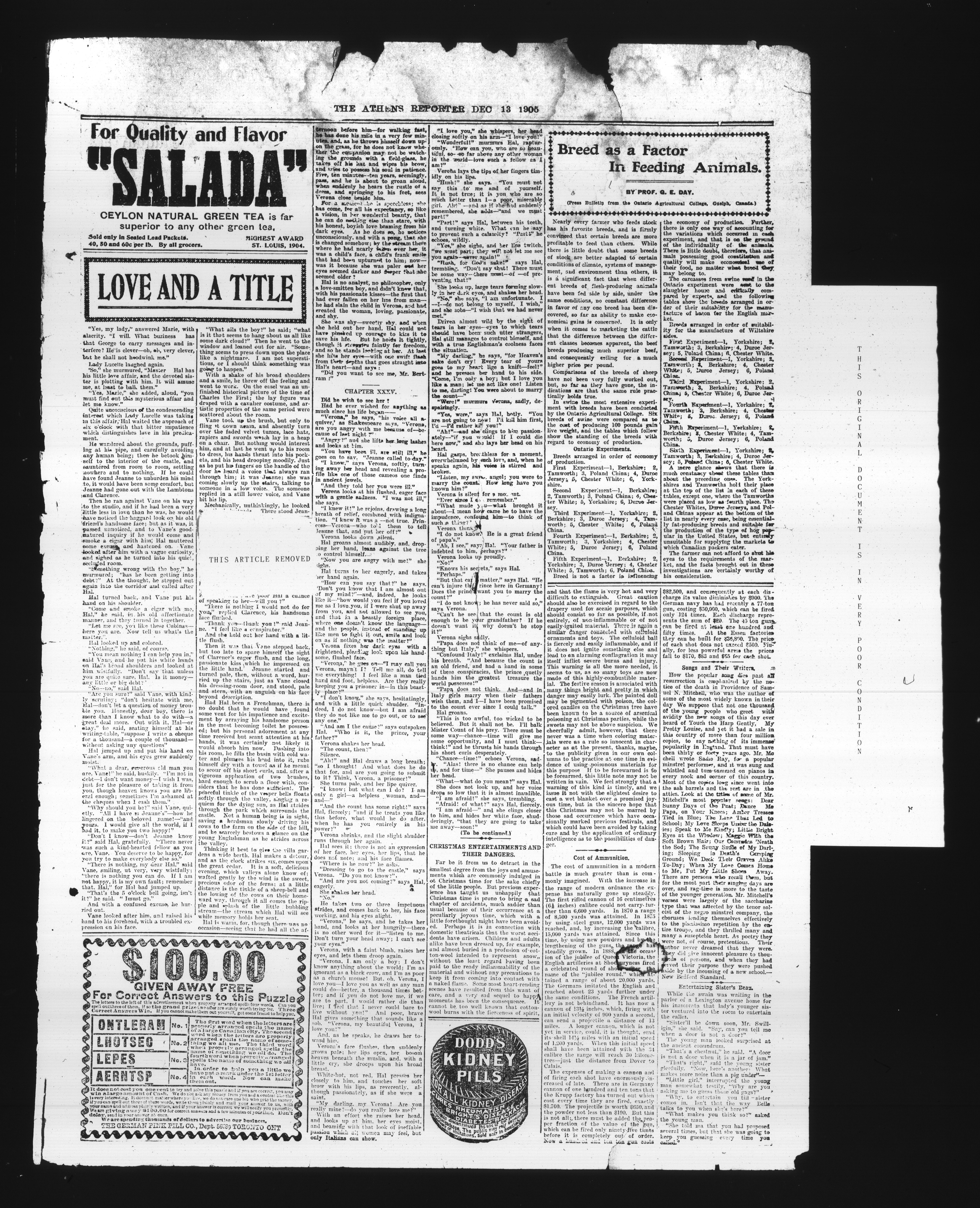The Athens reporter & County of Leeds advertiser : Vol. XXI, No. 50 (December 13, 1905)