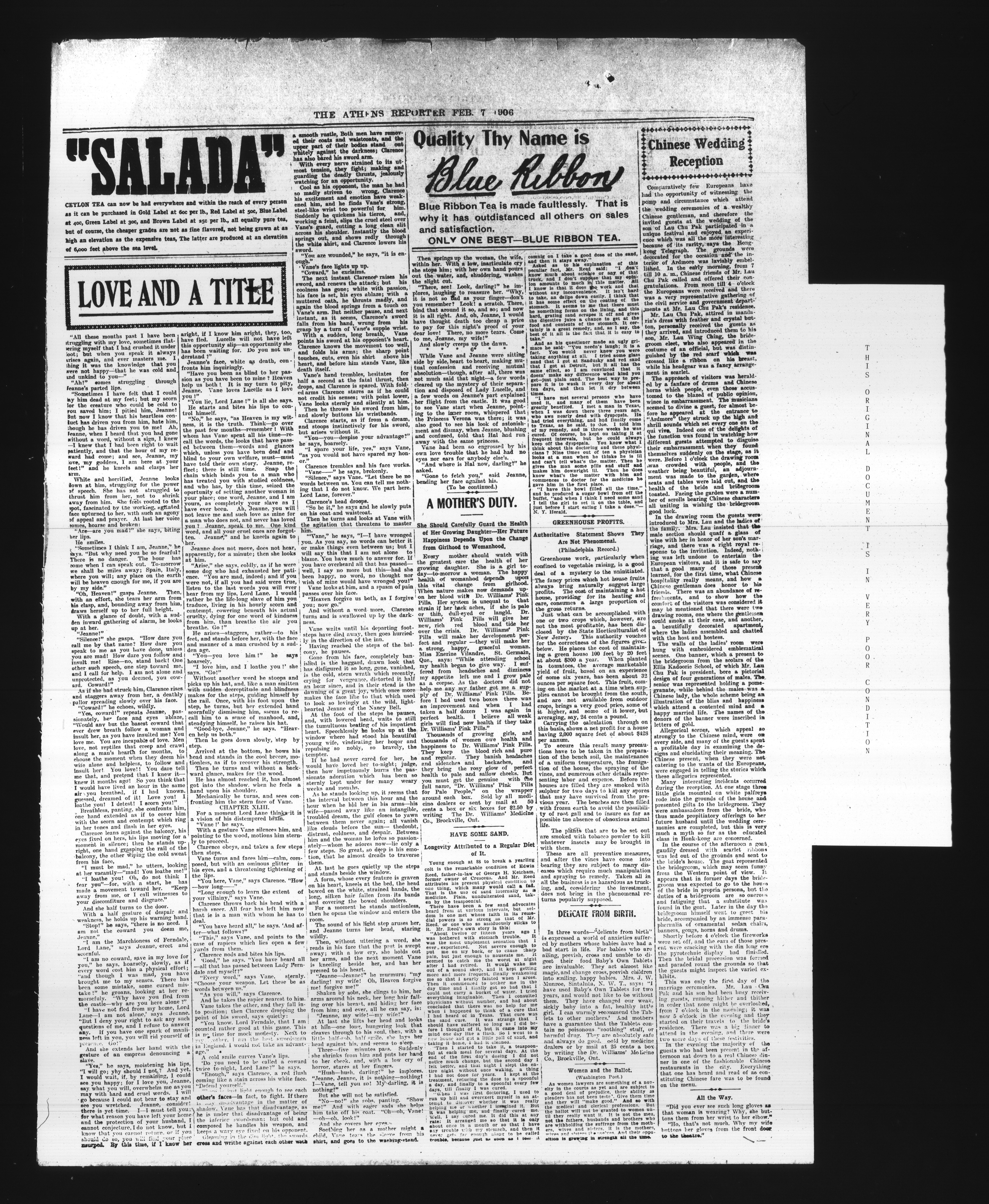The Athens reporter & County of Leeds advertiser : Vol. XXII, No. 6 (February 7, 1906)