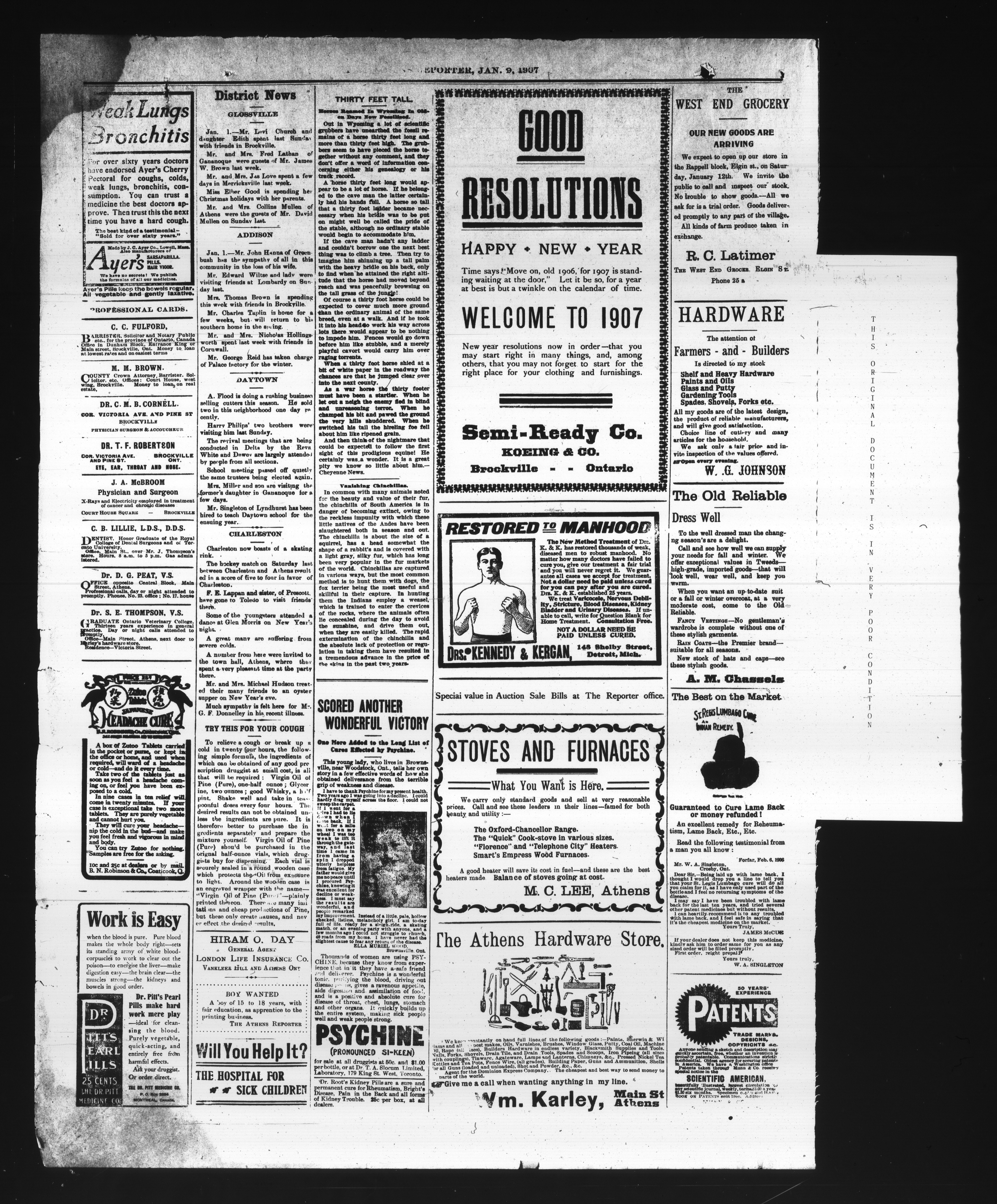 The Athens reporter & County of Leeds advertiser : Vol. XXIII, No. 2 (January 9, 1907)