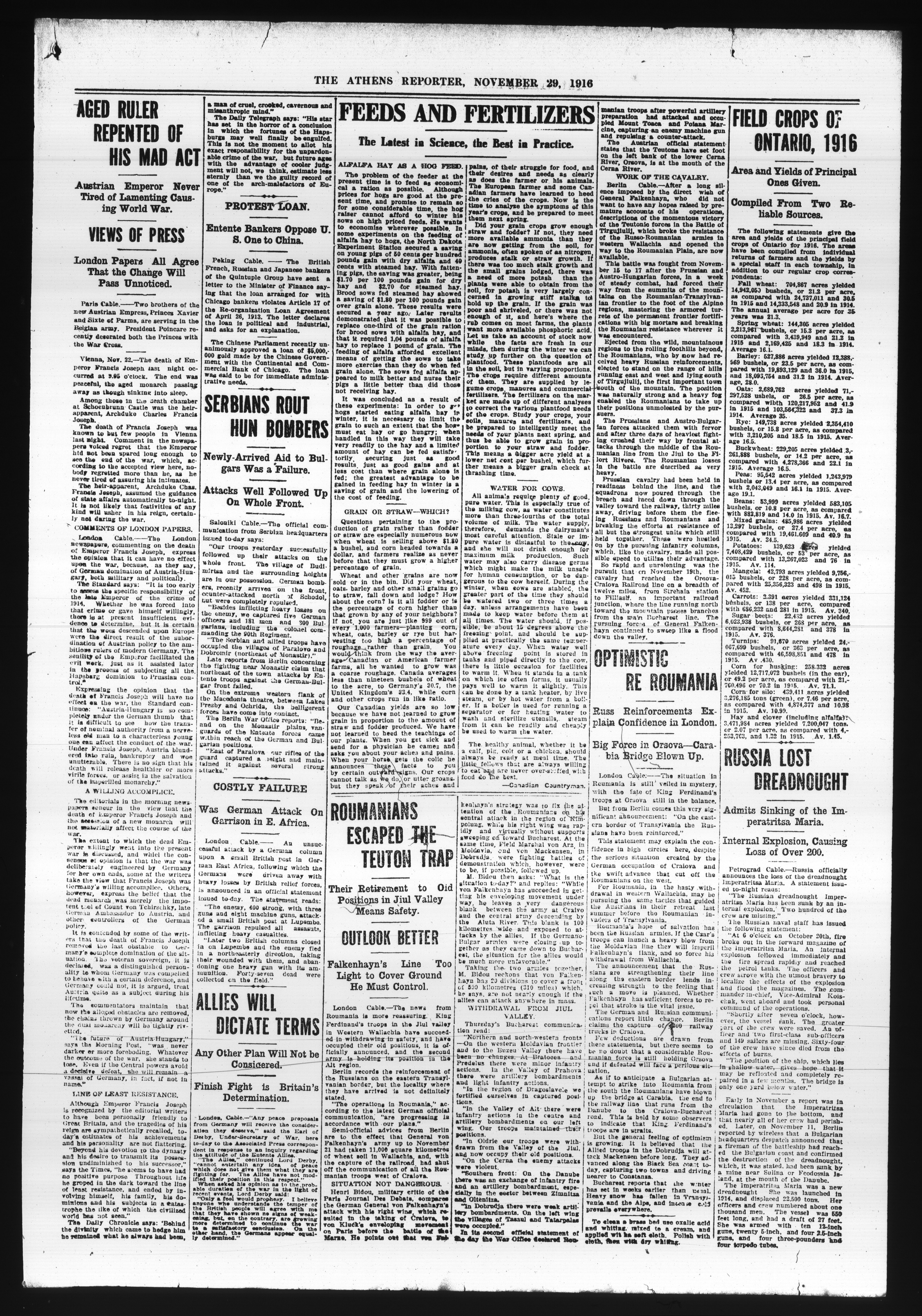 The Athens Reporter : Vol. XXXII, No. 47 [i.e. 48] (November 29, 1916)