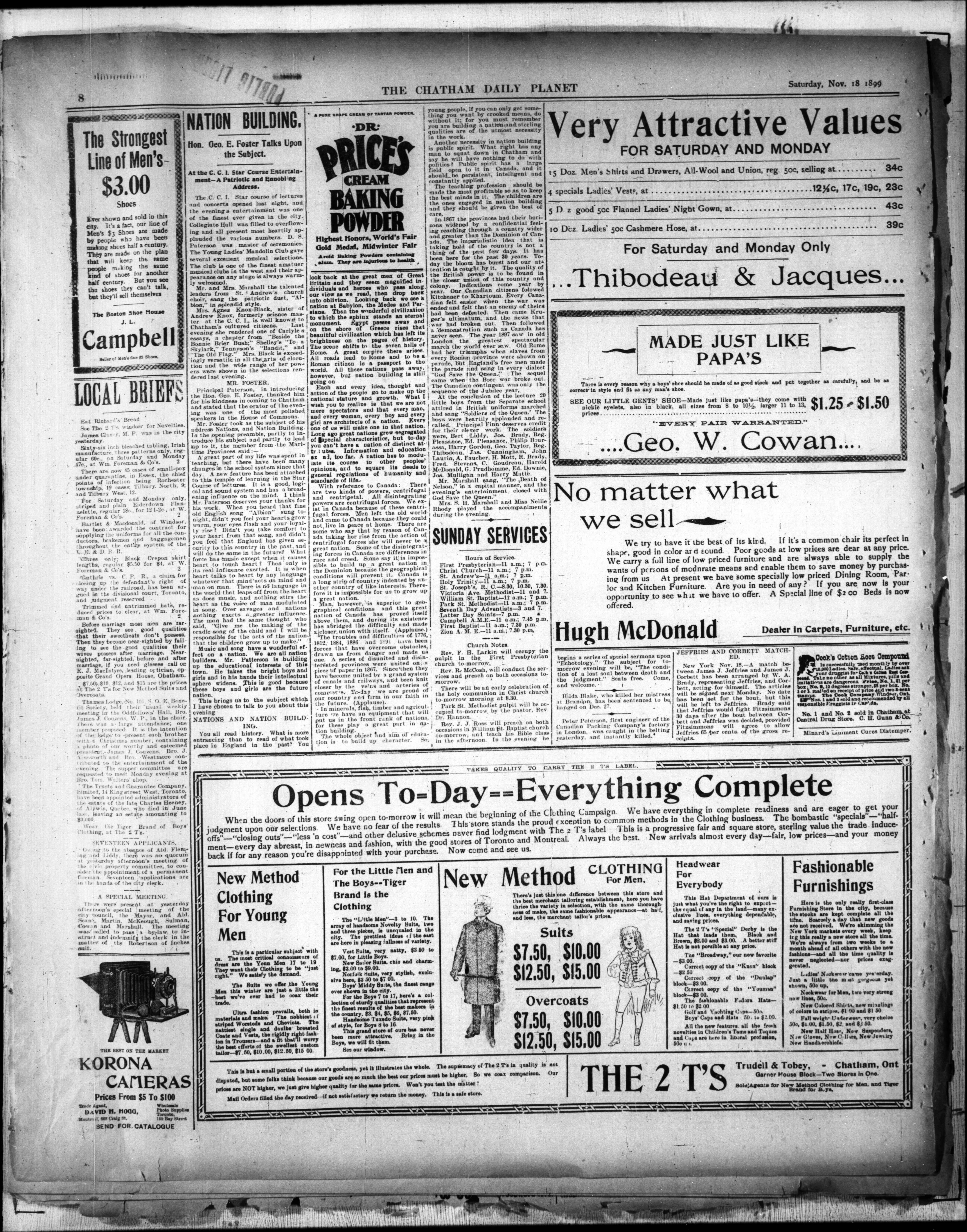 - The Chatham Daily Planet : Vol. VIII, No. 290 (November 18, 1899)