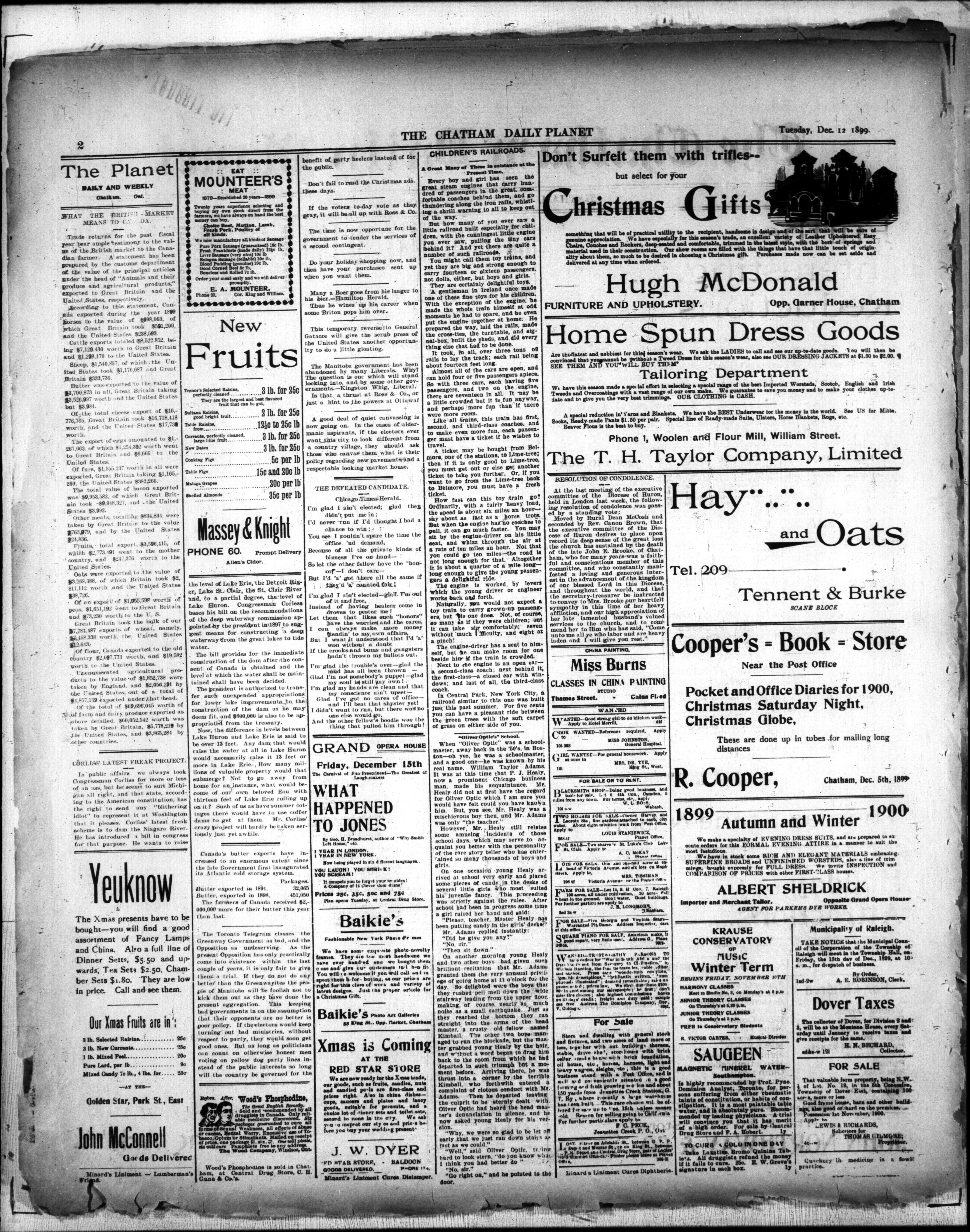 - The Chatham Daily Planet : Vol. VIII, No. 310 (December 12, 1899)