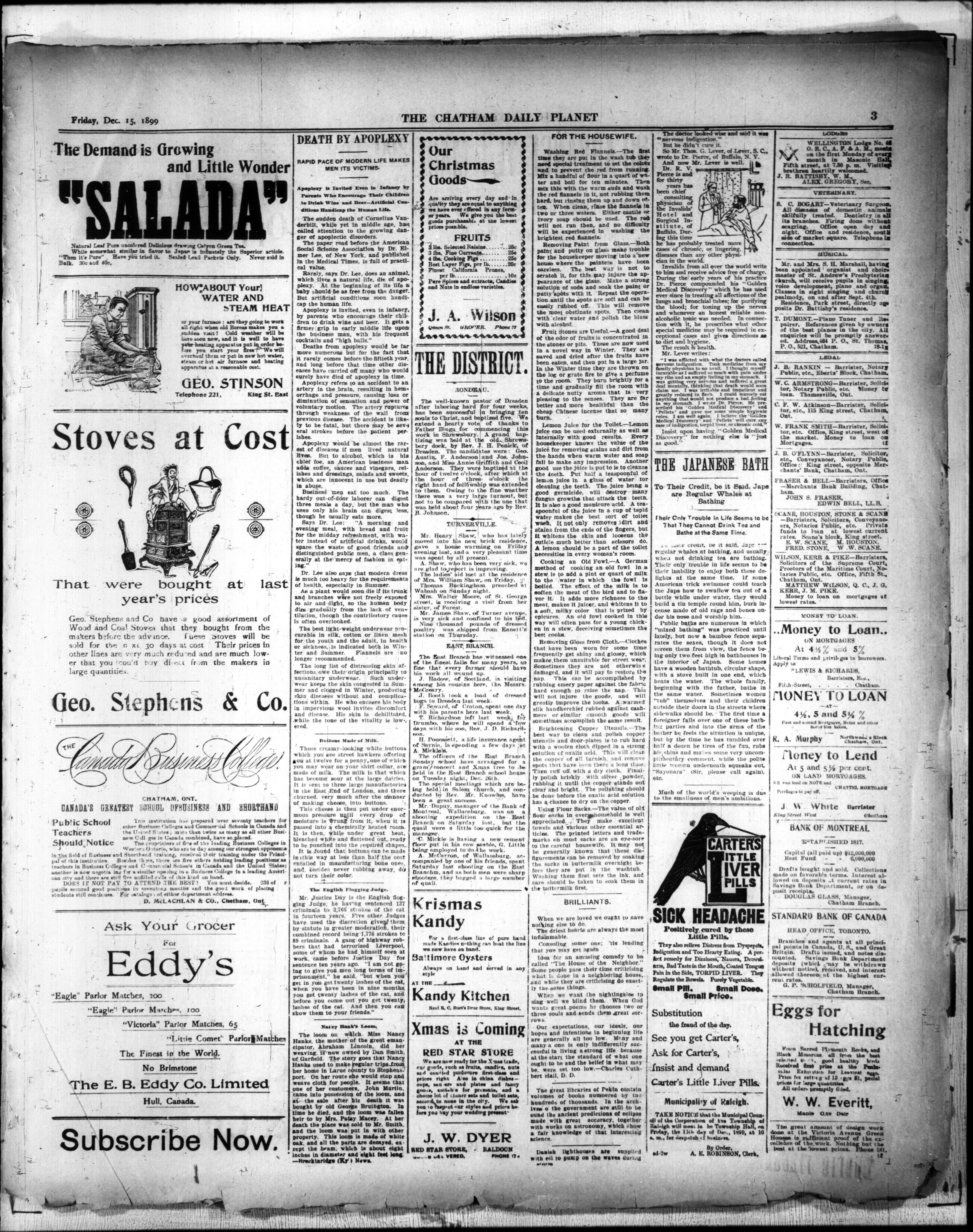 - The Chatham Daily Planet : Vol. VIII, No. 313 (December 15, 1899)