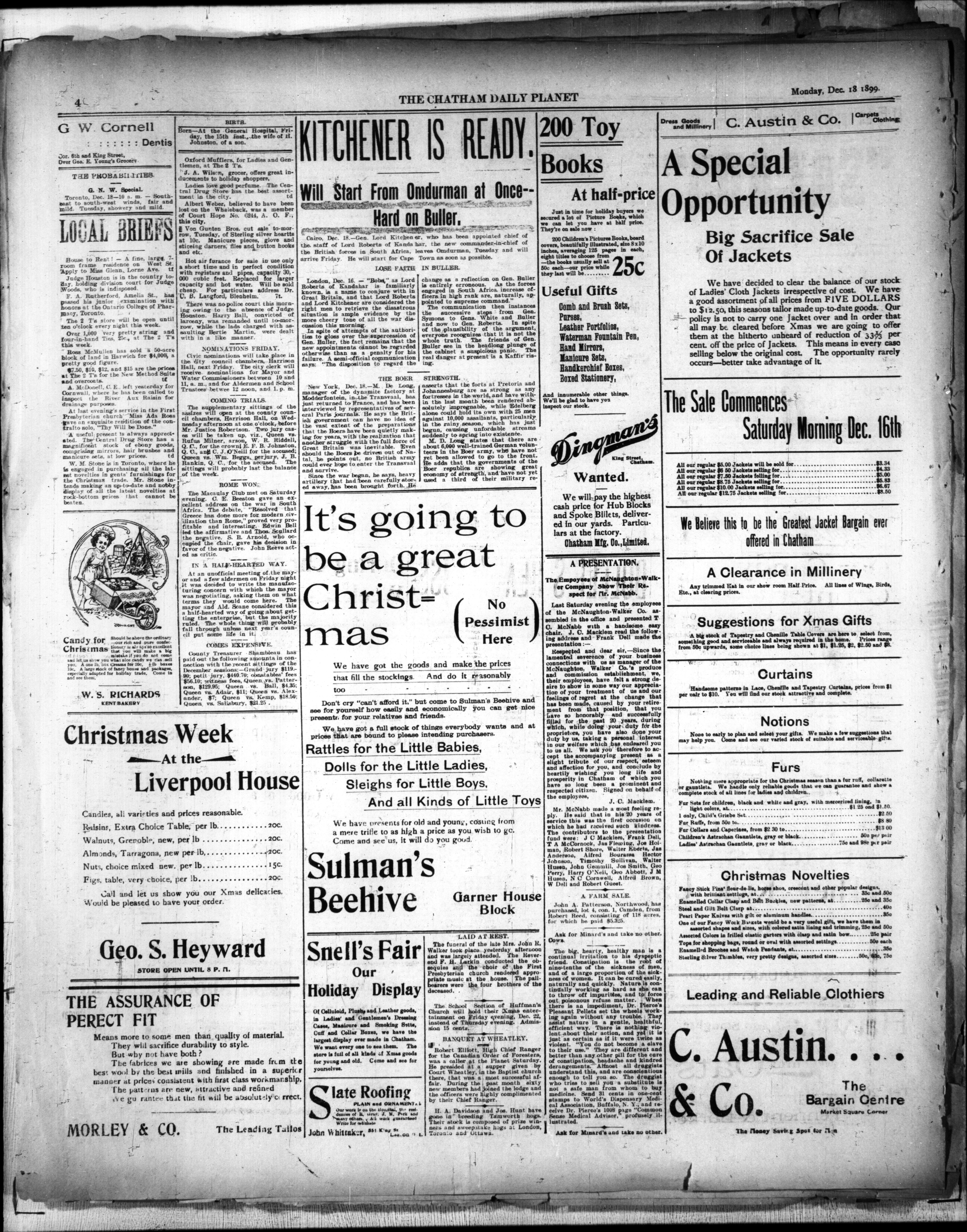 The Chatham Daily Planet. : The Chatham Daily Planet : Vol. IX, No. 2 (December 18, 1899)