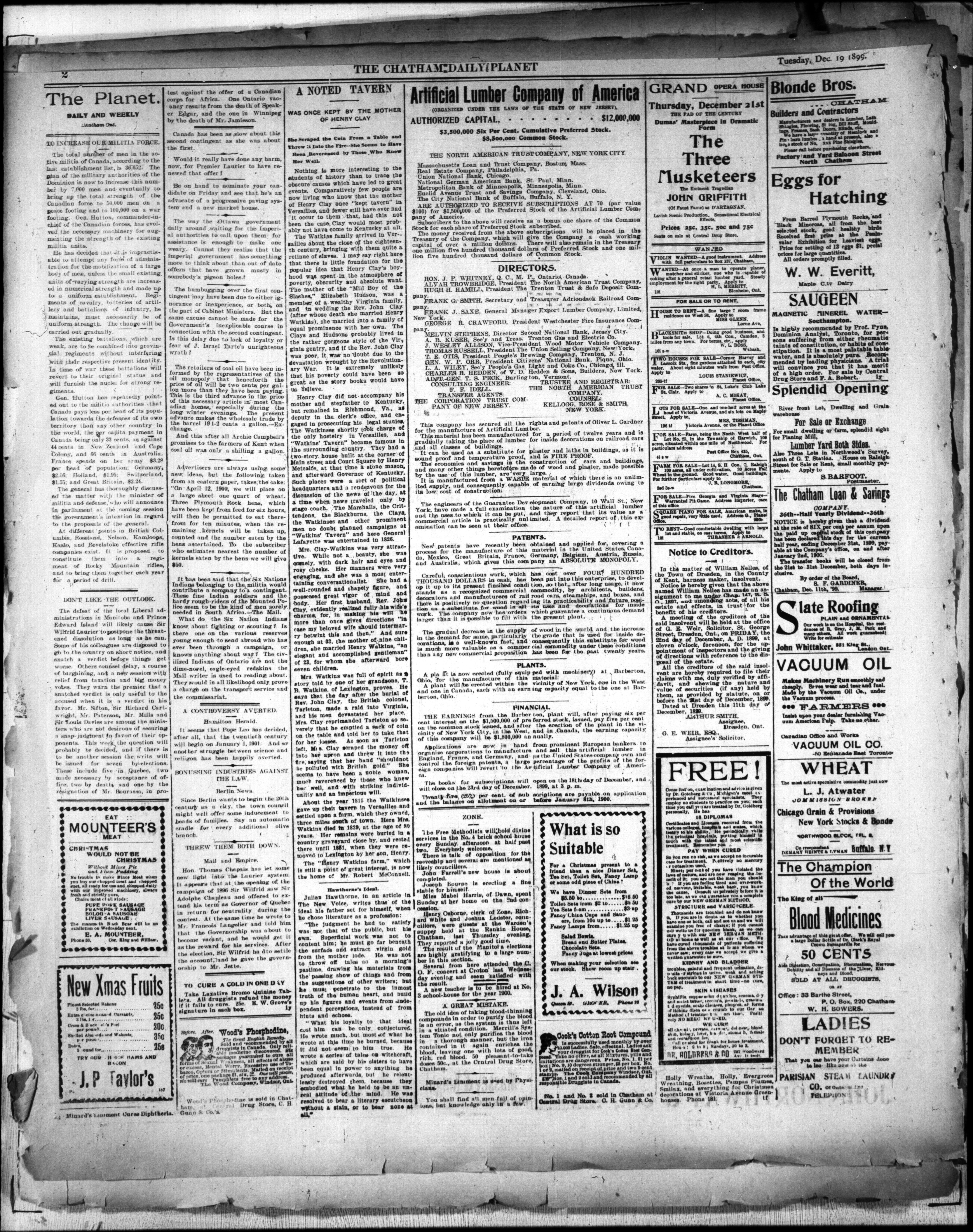 - The Chatham Daily Planet : Vol. IX, No. 3 (December 19, 1899)