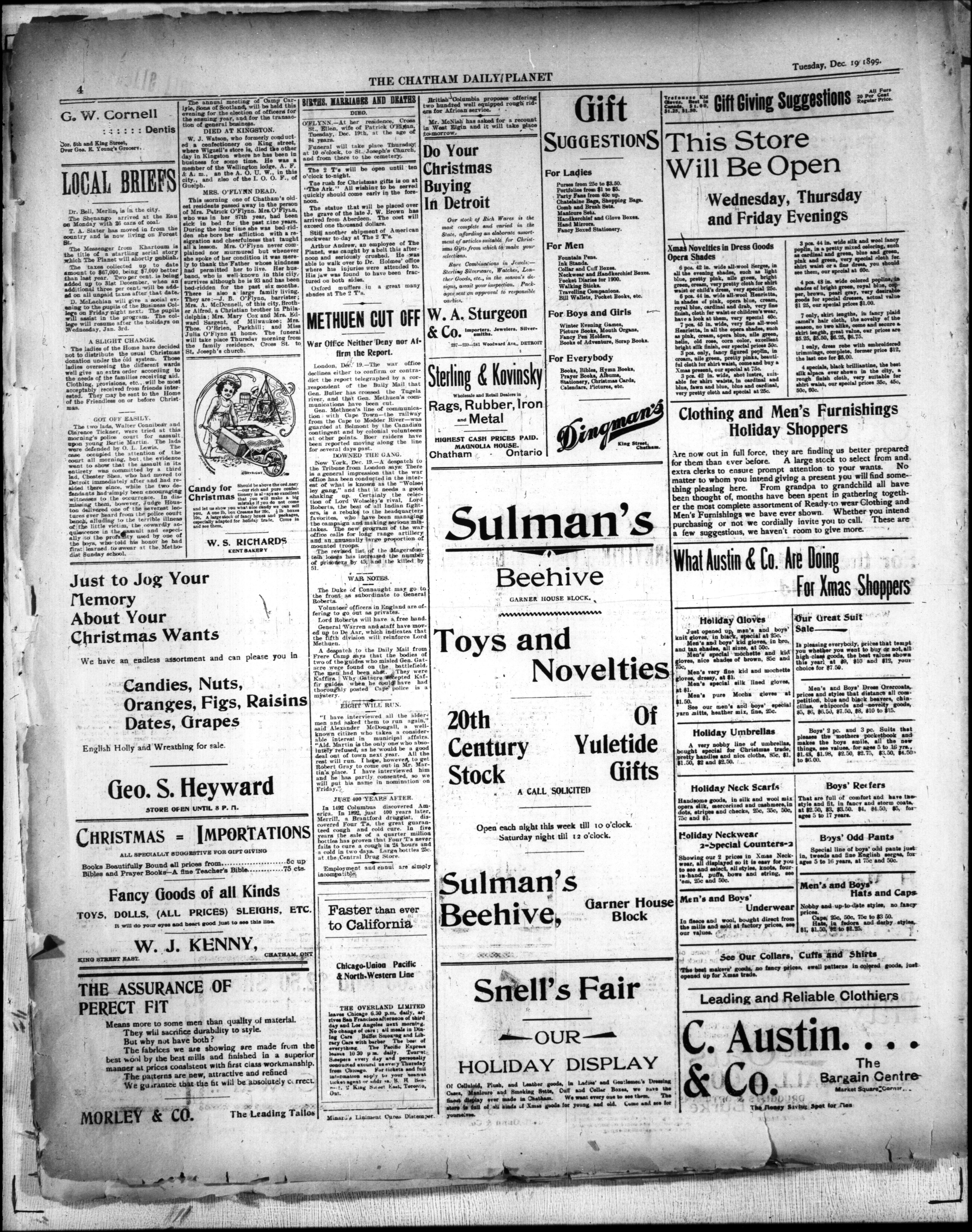 - The Chatham Daily Planet : Vol. IX, No. 3 (December 19, 1899)