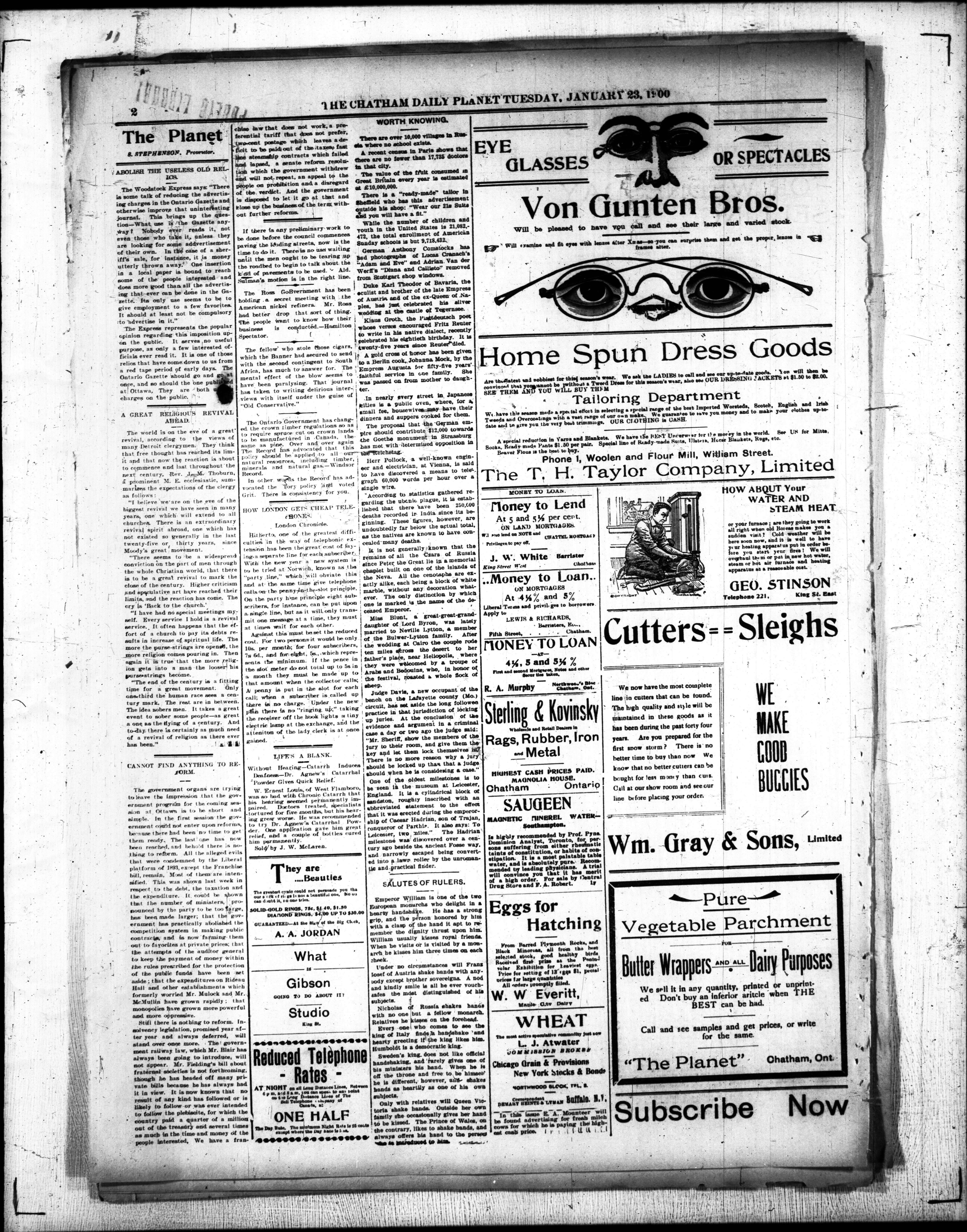 The Chatham Daily Planet. : The Chatham Daily Planet : Vol. IX, 33 (January 23, 1900)