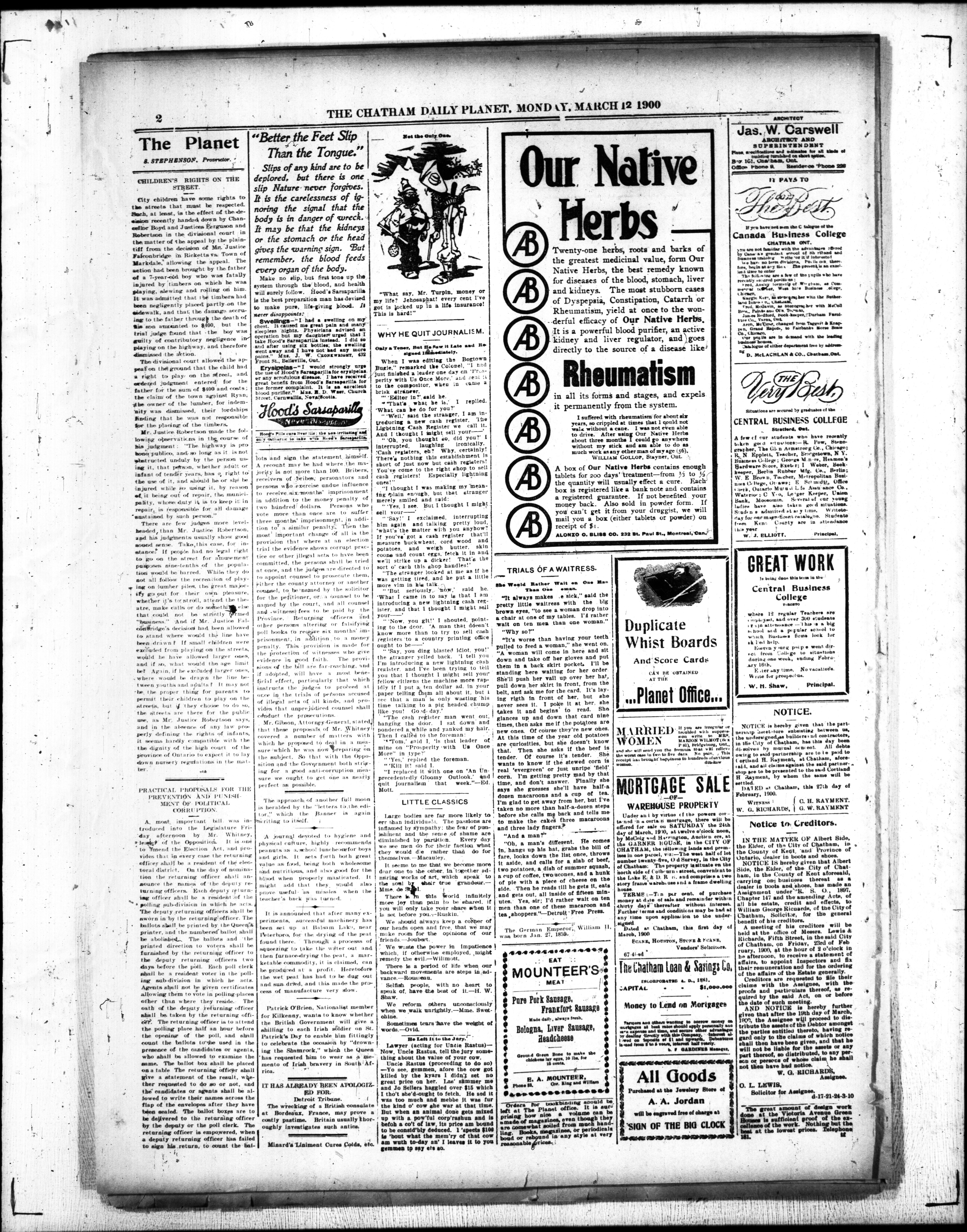 - The Chatham Daily Planet : Vol. IX, 74 (March 12, 1900)