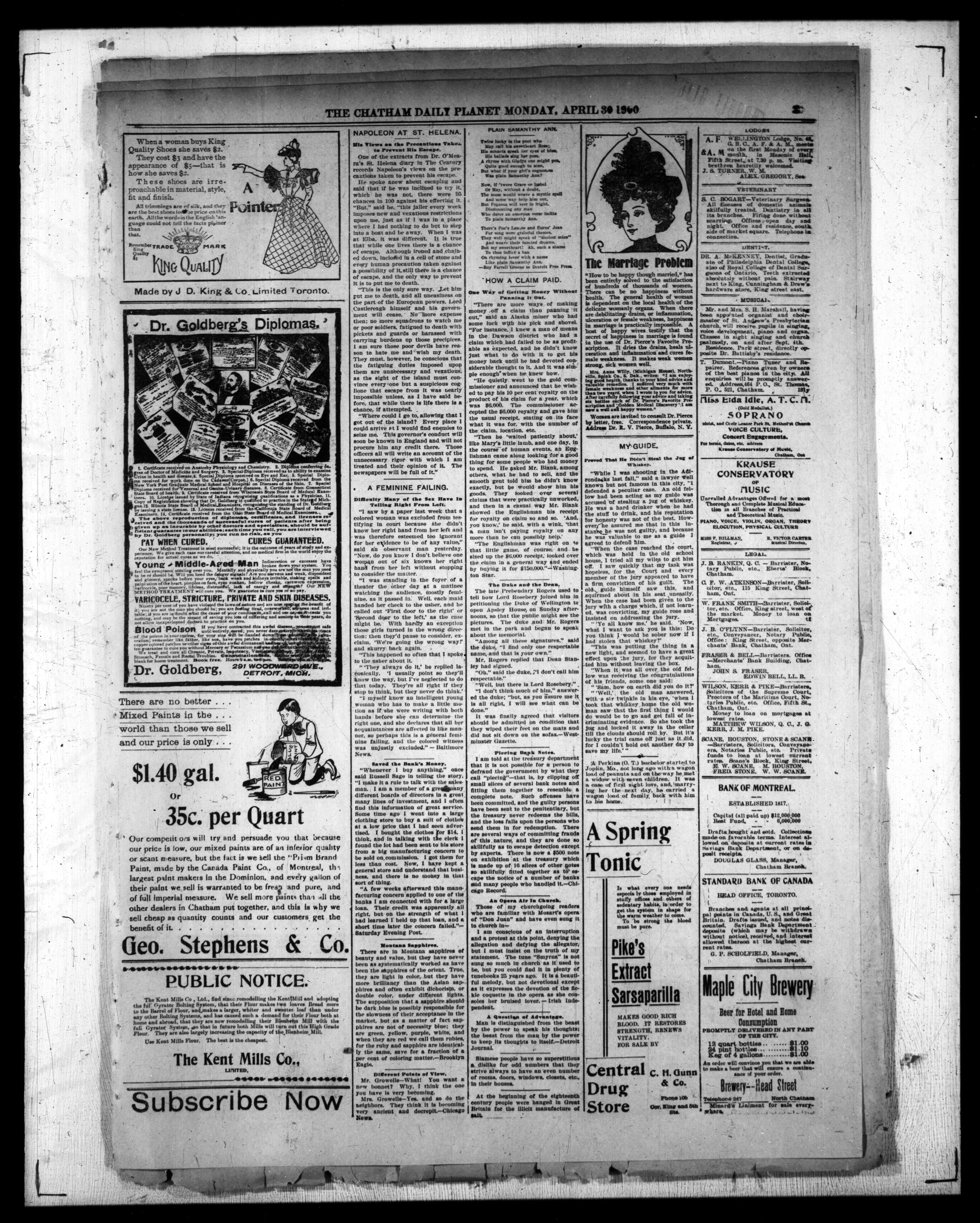 - The Chatham Daily Planet : Vol. IX, 116 (April 30, 1900)