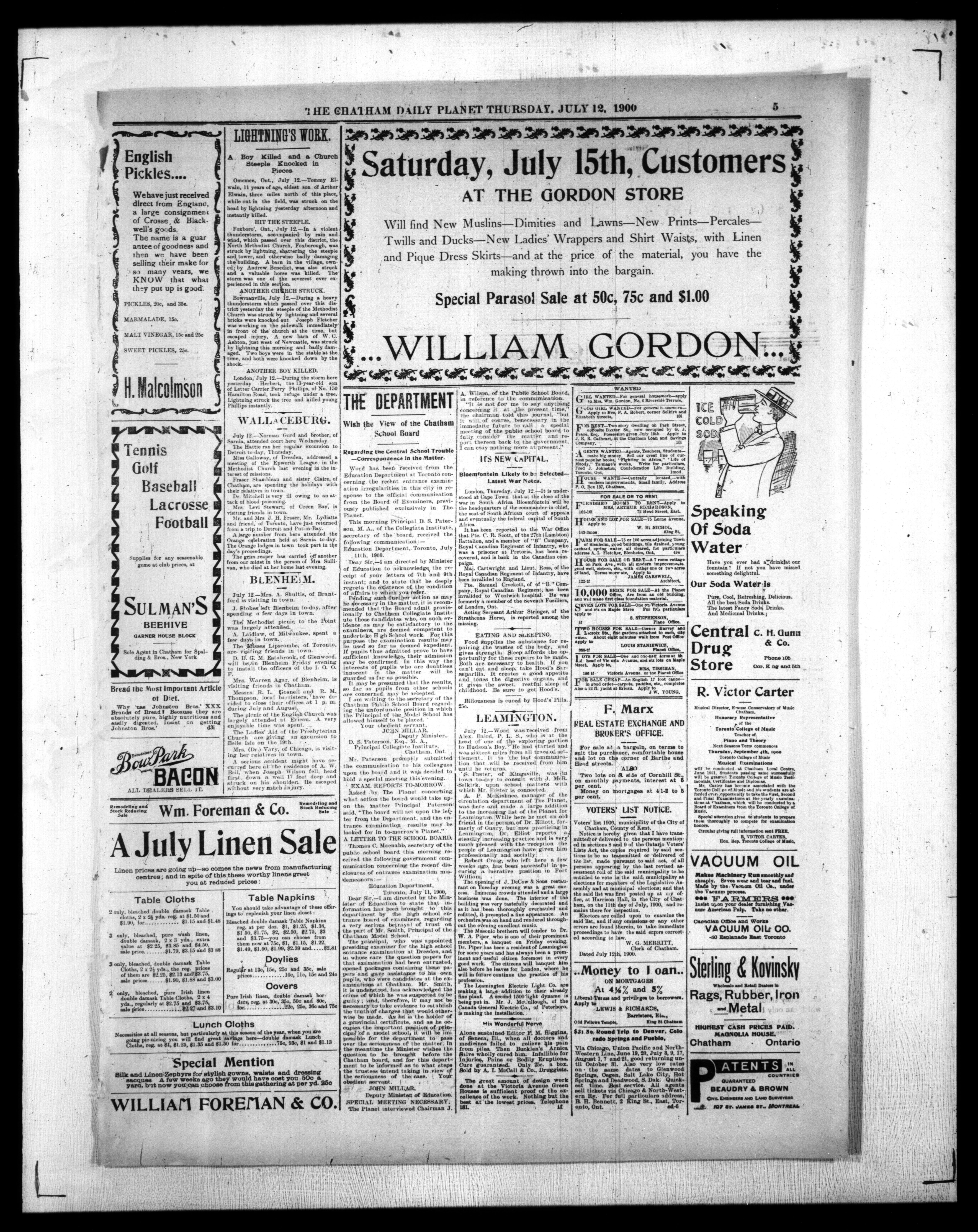 - The Chatham Daily Planet : Vol. IX, 179 (July 12, 1900)