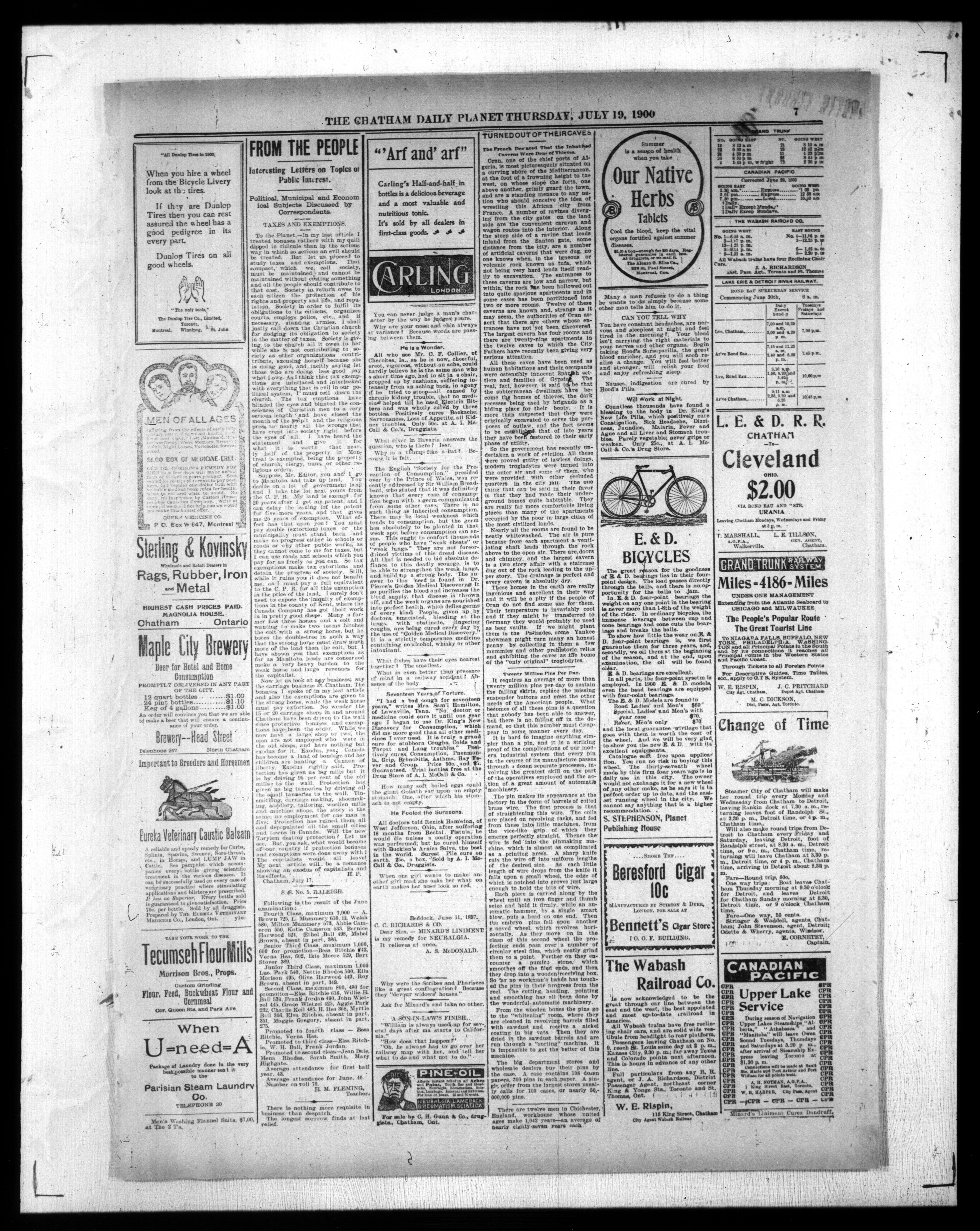 - The Chatham Daily Planet : Vol. IX, 185 (July 19, 1900)