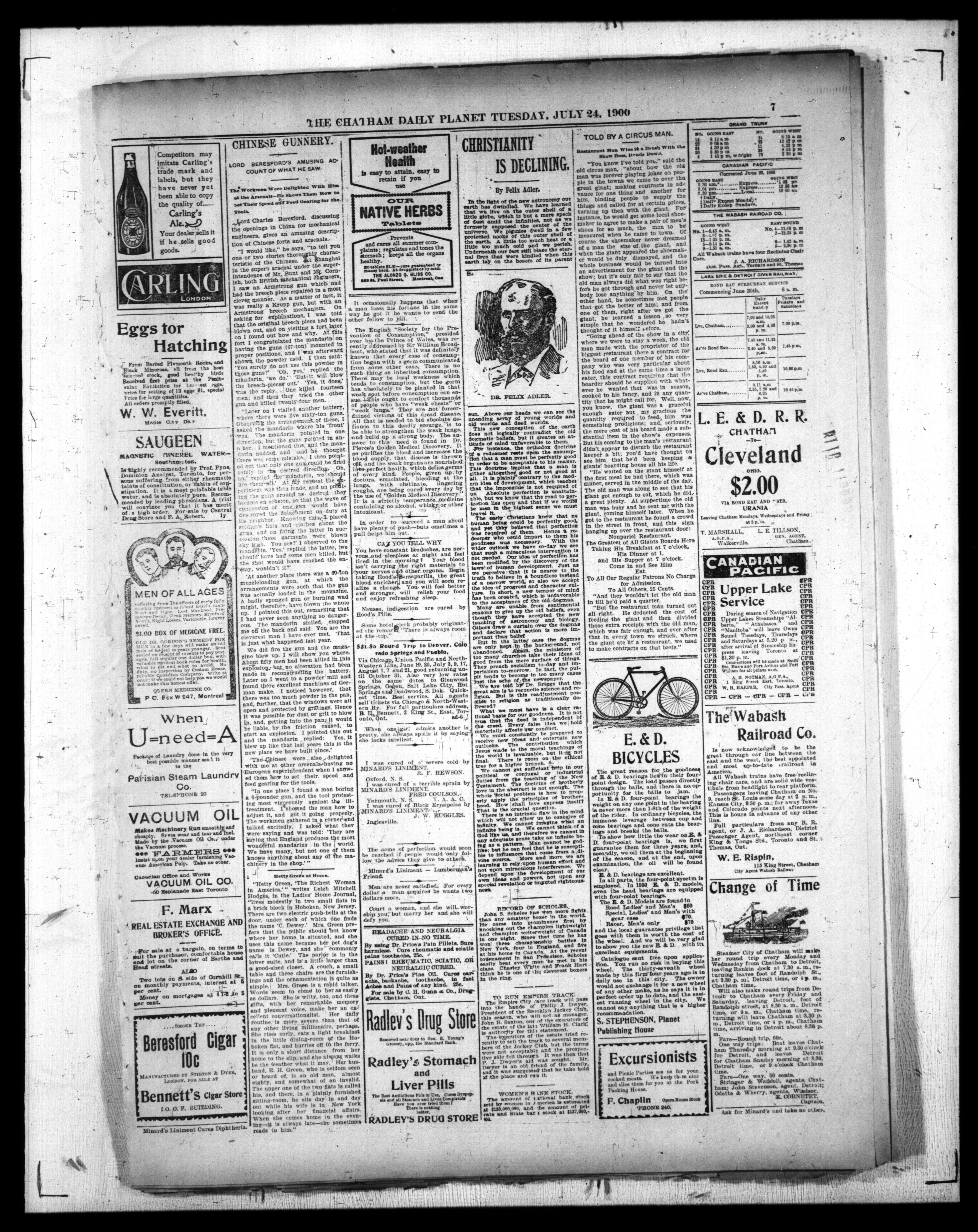 - The Chatham Daily Planet : Vol. IX, 189 (July 24, 1900)
