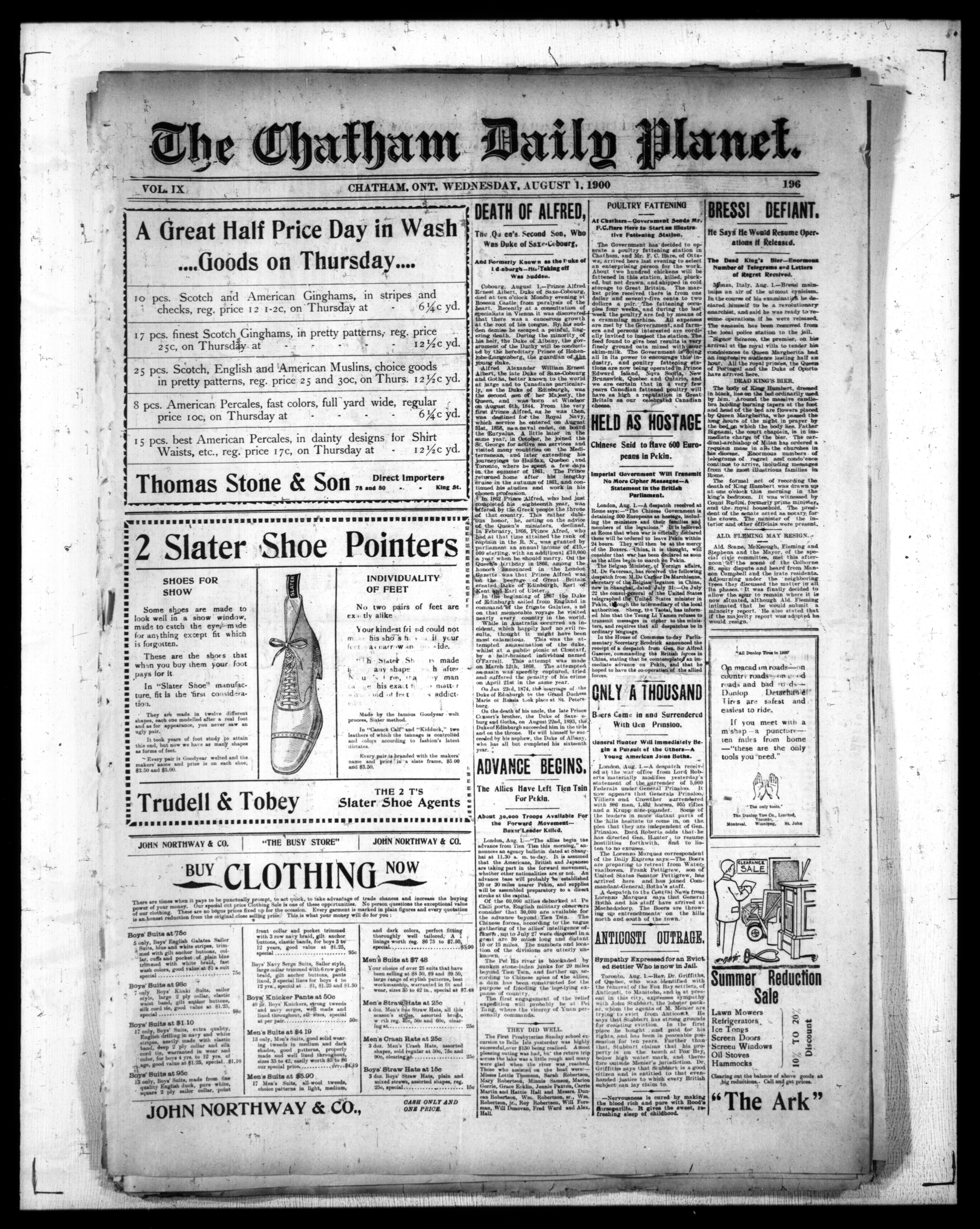 - The Chatham Daily Planet : Vol. IX, 196 (August 1, 1900)