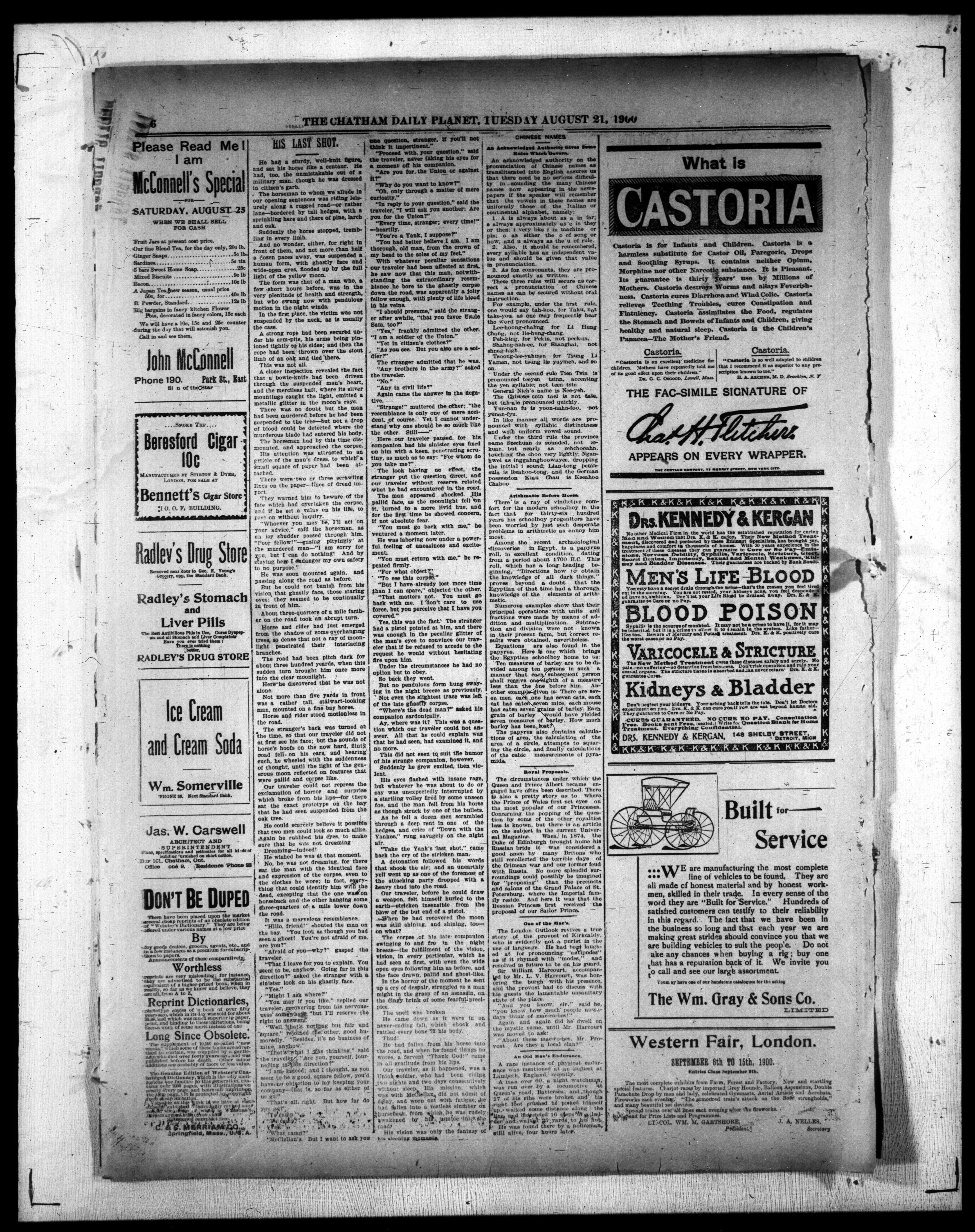 - The Chatham Daily Planet : Vol. IX, 213 (August 21, 1900)