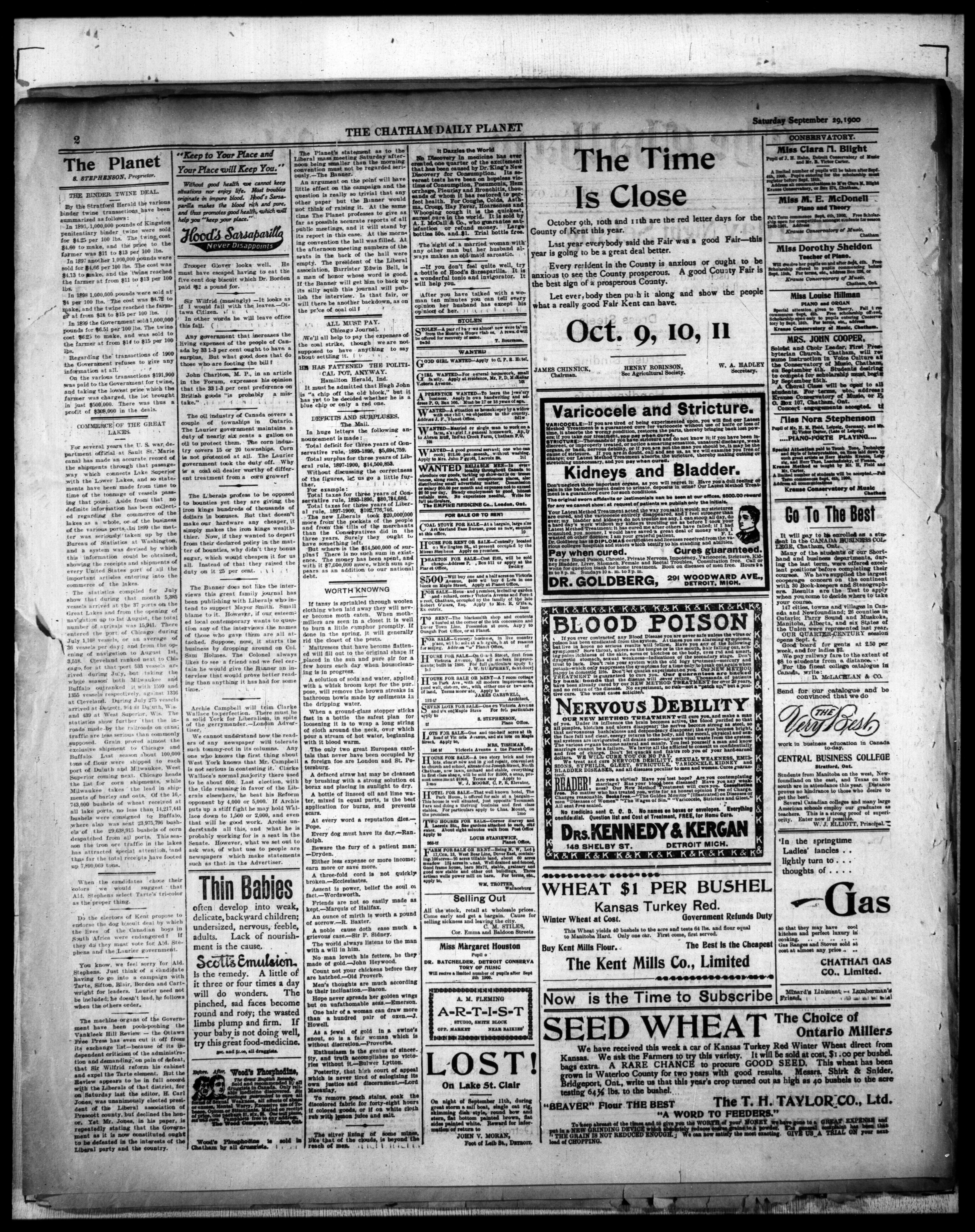 - The Chatham Daily Planet : Vol. IX, No. 247 (September 29, 1900)