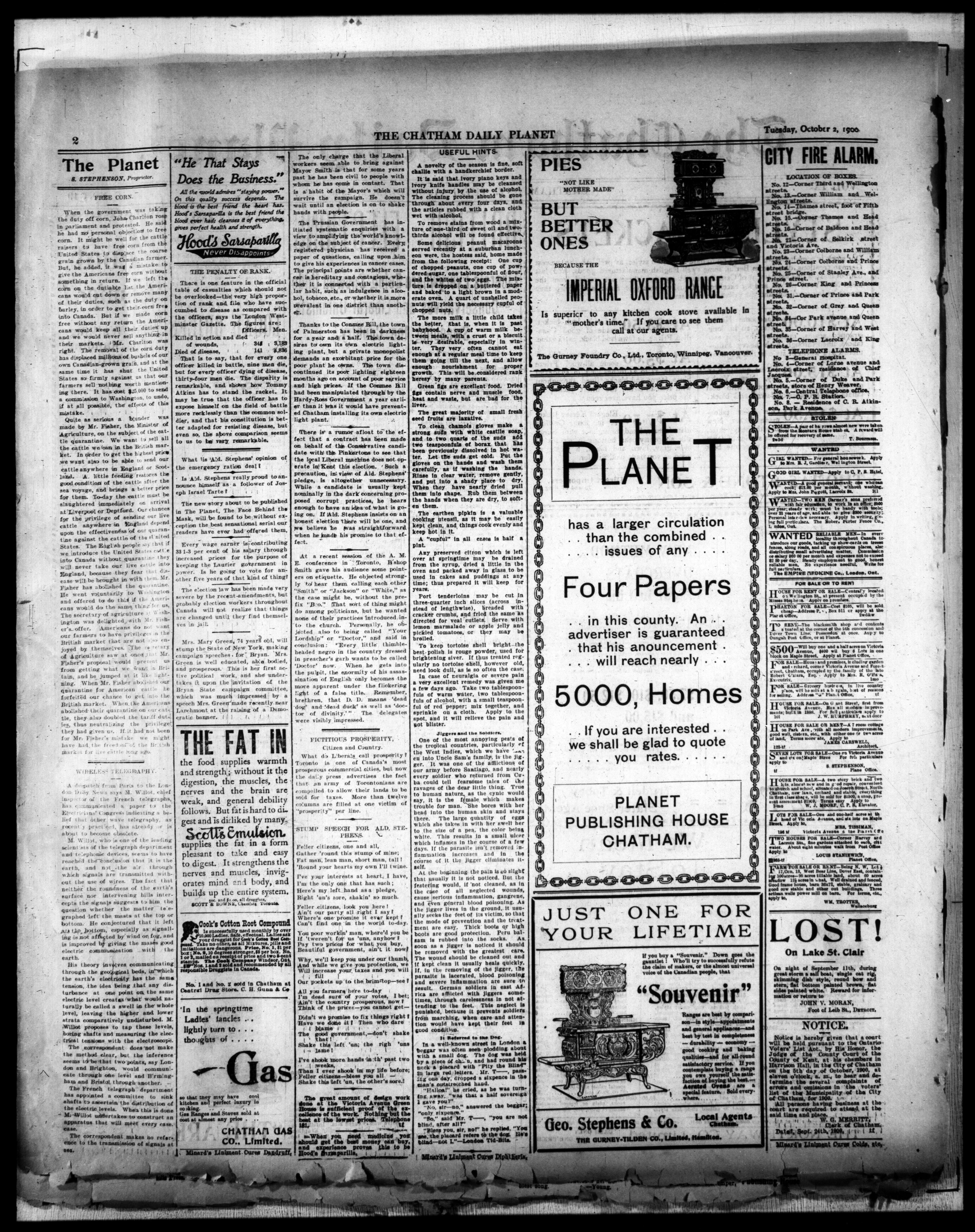 The Chatham Daily Planet. : The Chatham Daily Planet : Vol. IX, No. 249 (October 2, 1900)