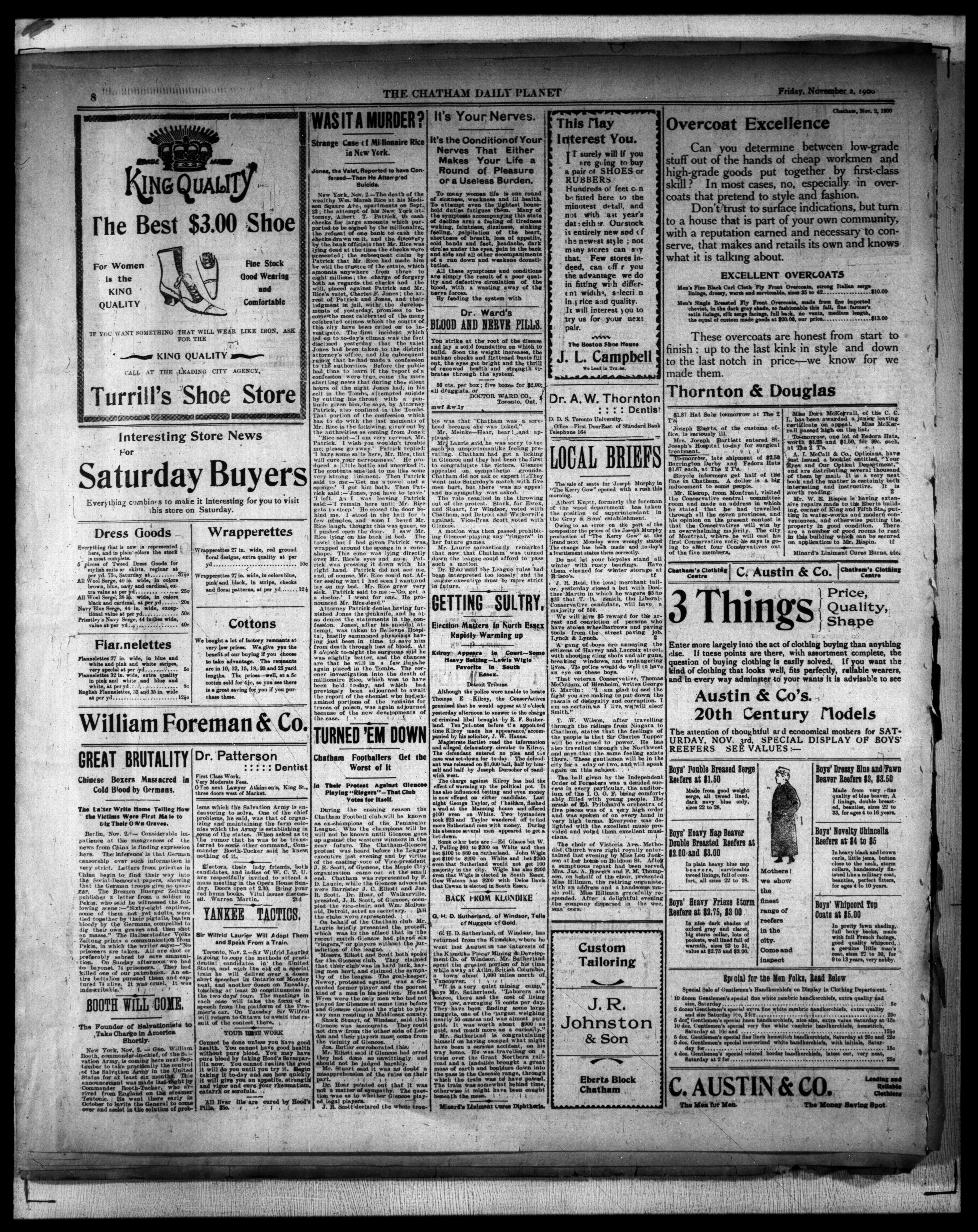 - The Chatham Daily Planet : Vol. IX, No. 277 (November 2, 1900)