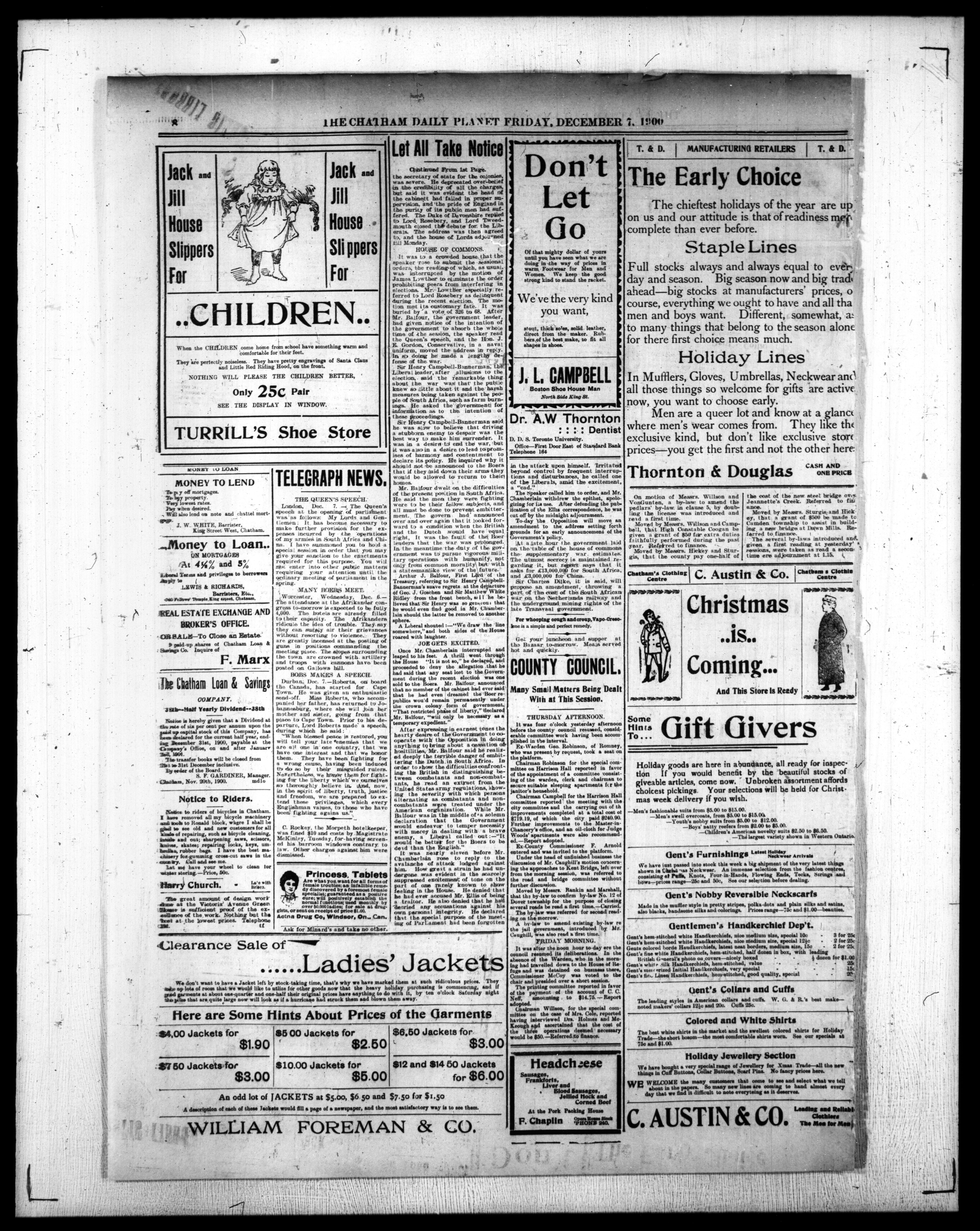 The Chatham Daily Planet. : The Chatham Daily Planet : Vol. IX, 308 (December 7, 1900)