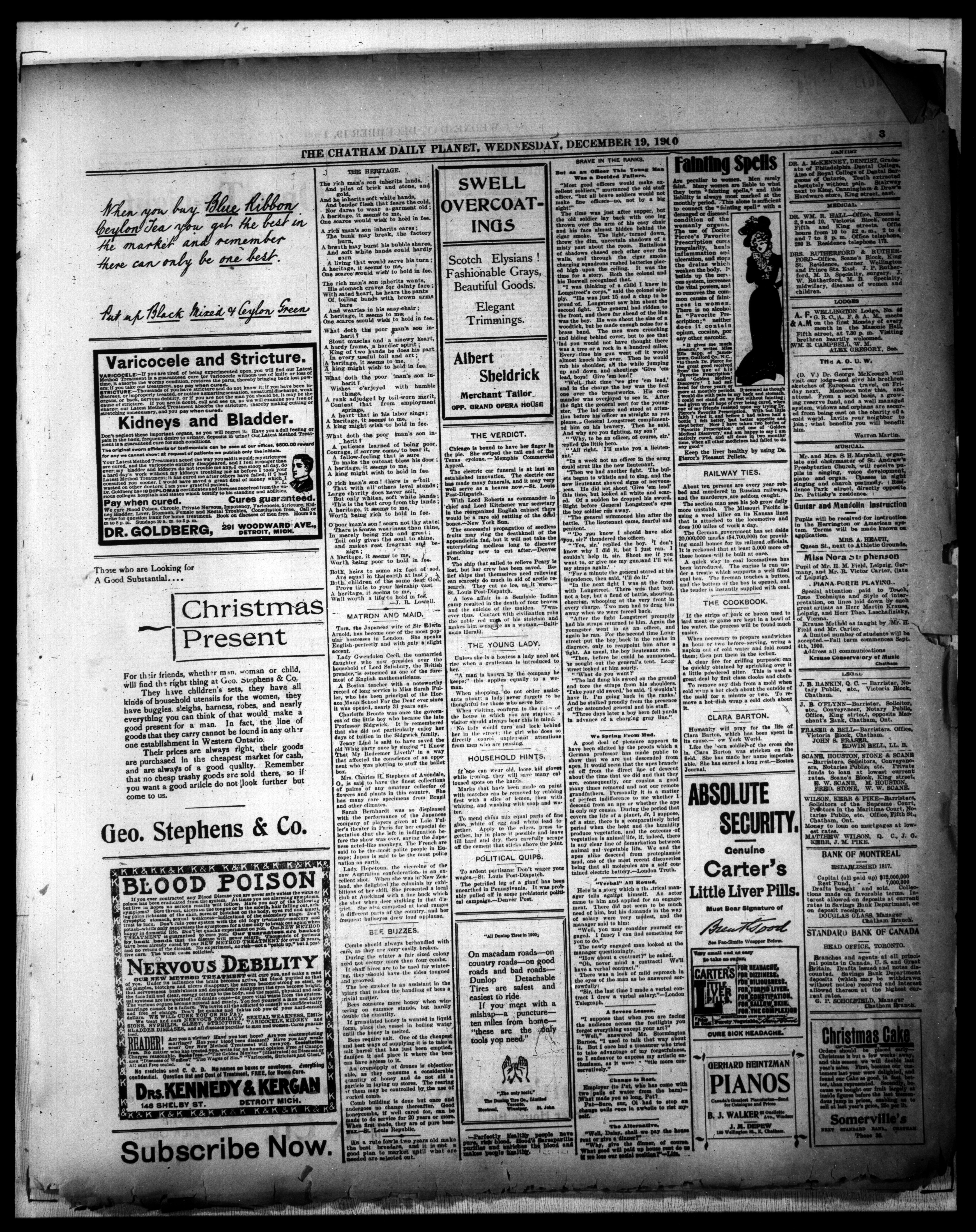 - The Chatham Daily Planet : Vol. X, No. 5 (December 19, 1900)