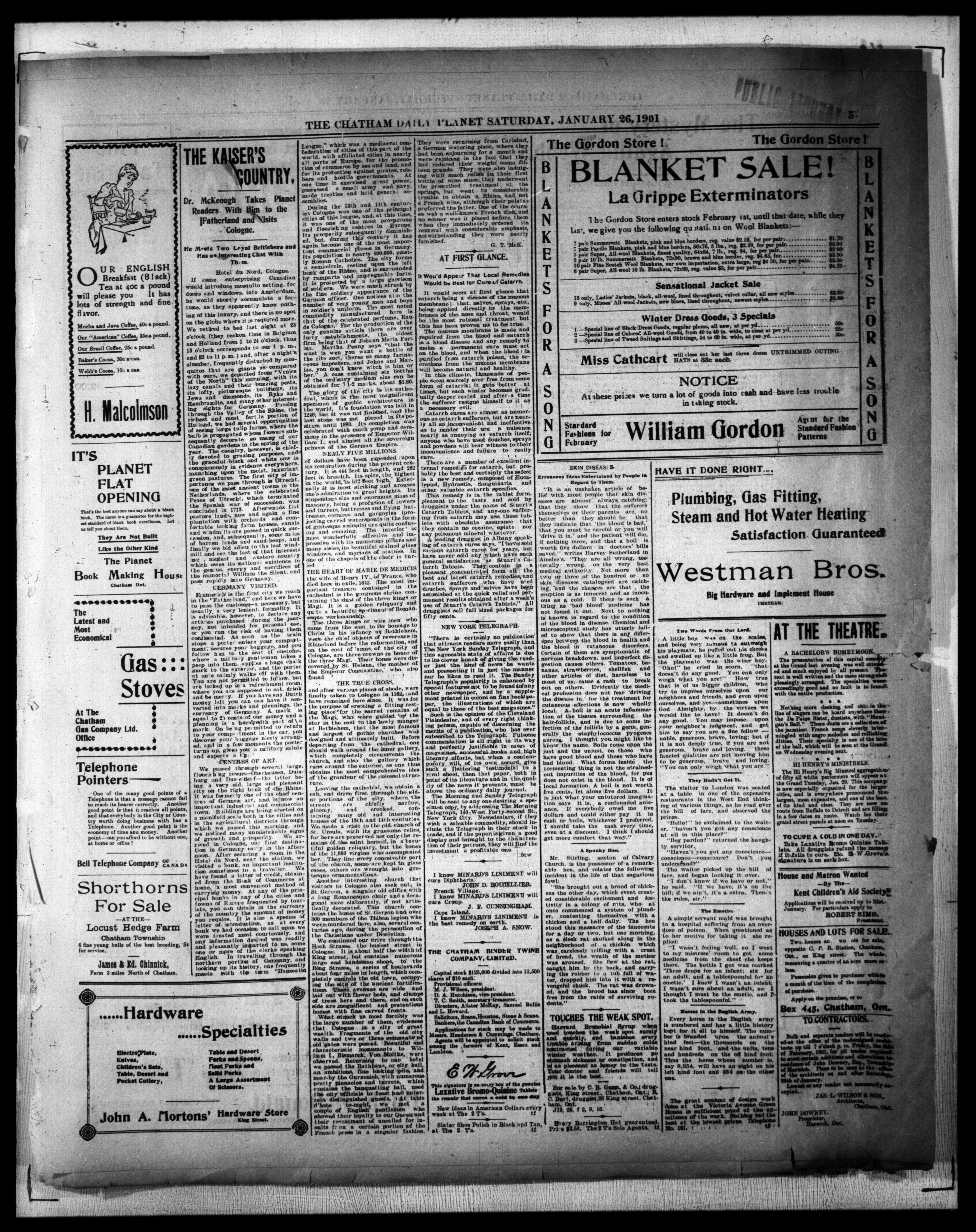 The Chatham Daily Planet. : The Chatham Daily Planet : Vol. X, No. 39 (January 26, 1900)