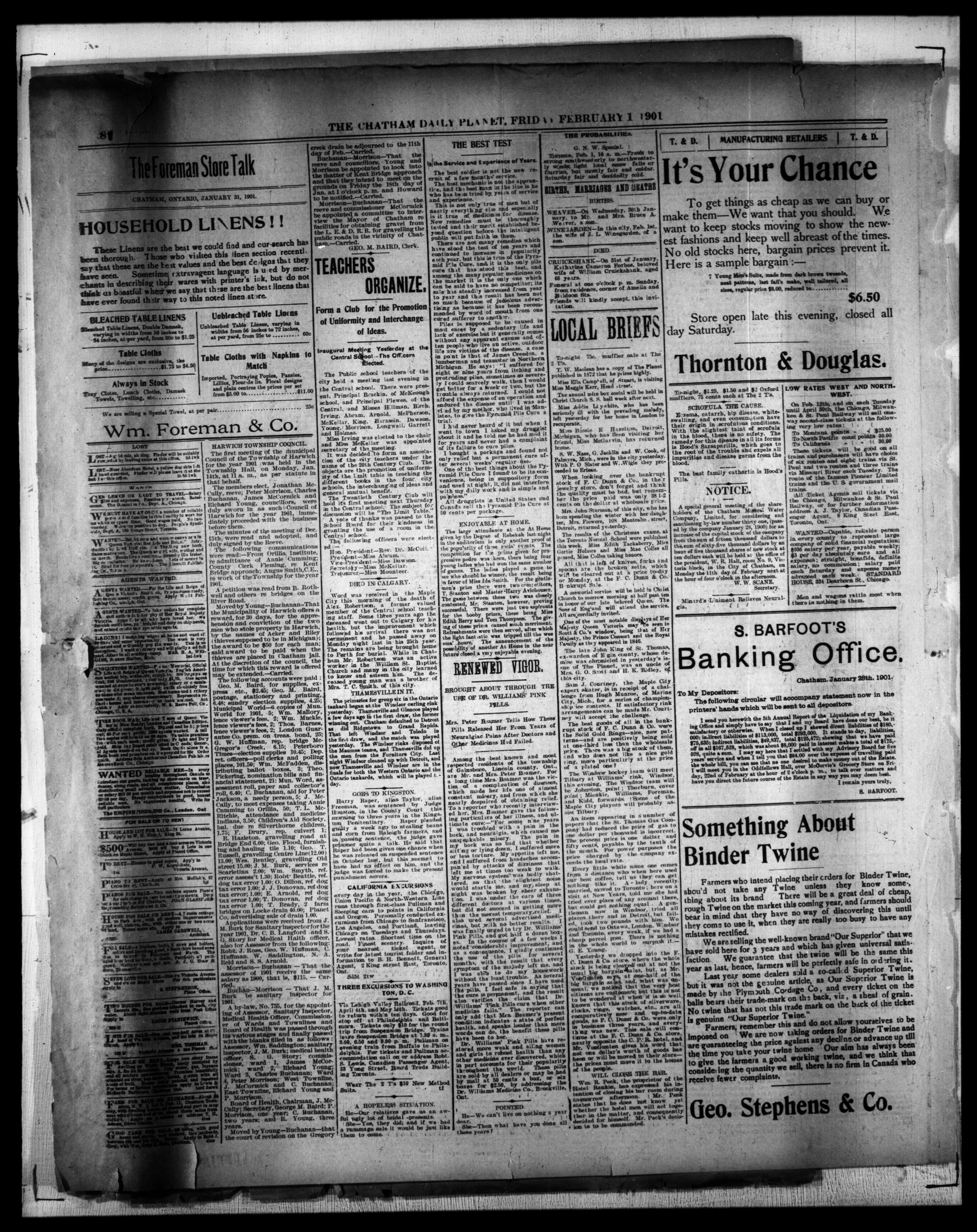 - The Chatham Daily Planet : Vol. X, No. 44 (February 1, 1900)