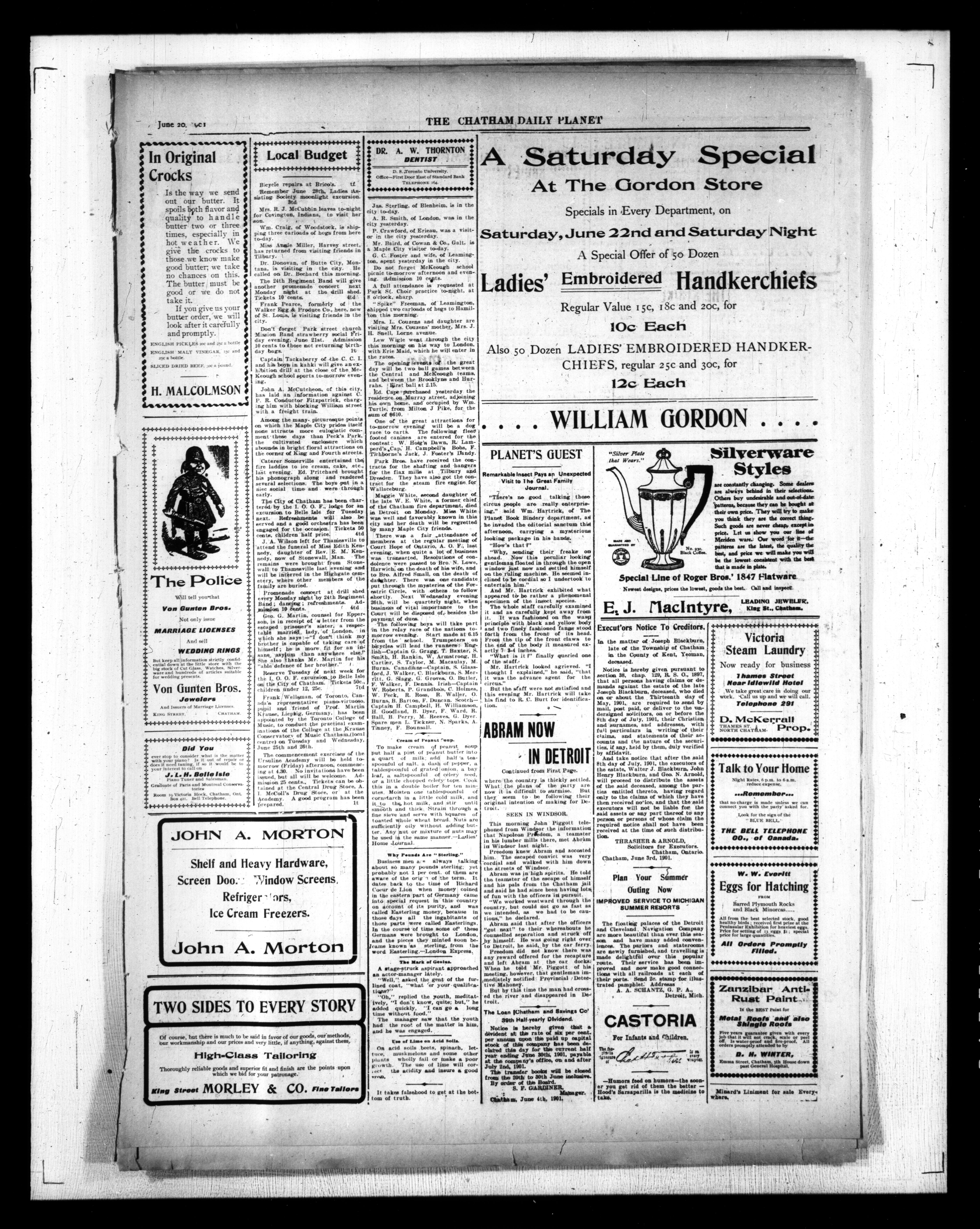 - The Chatham Daily Planet : Vol. X, No. 173 (June 20, 1901)