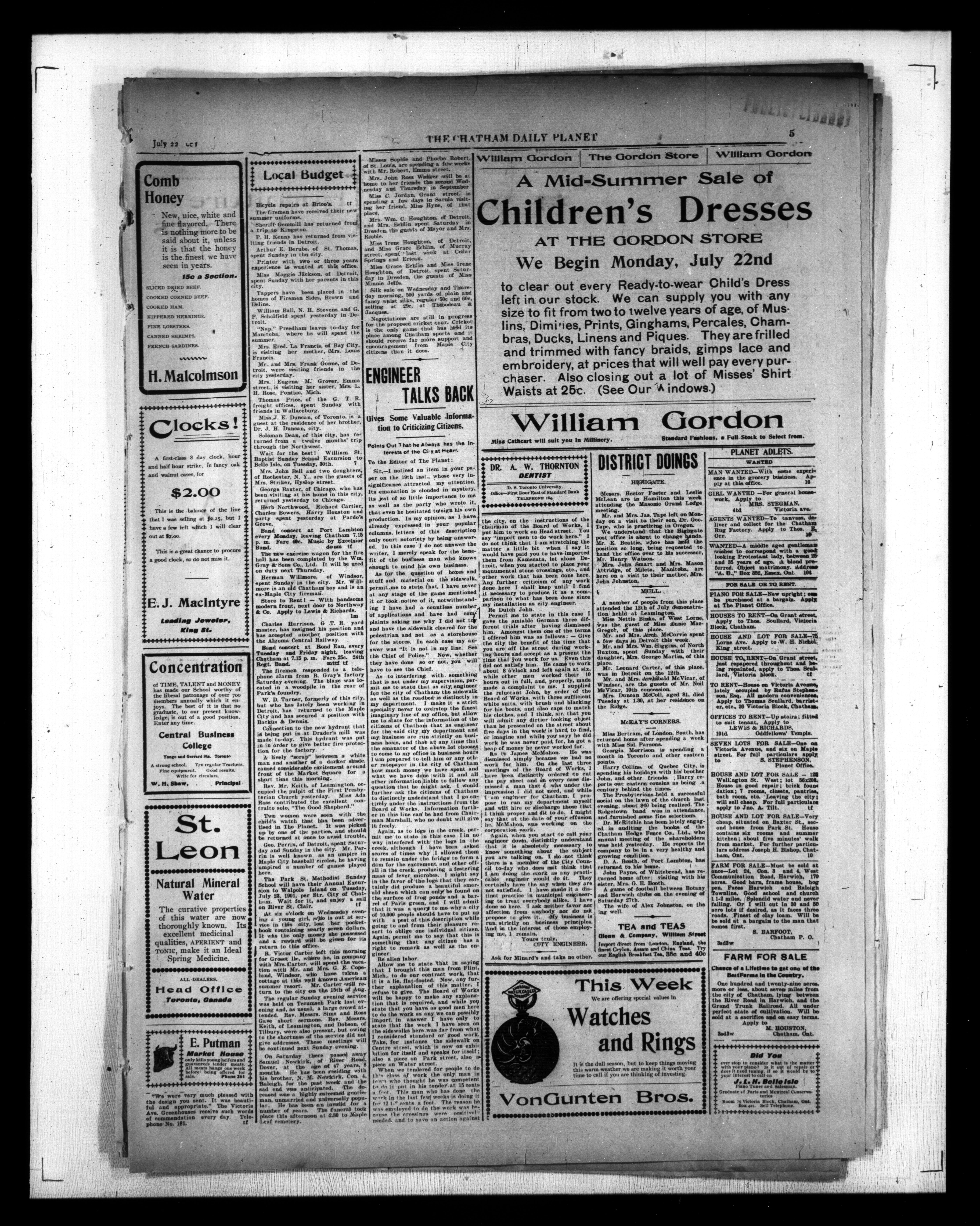 - The Chatham Daily Planet : Vol. X, No. 200 (July 22, 1901)