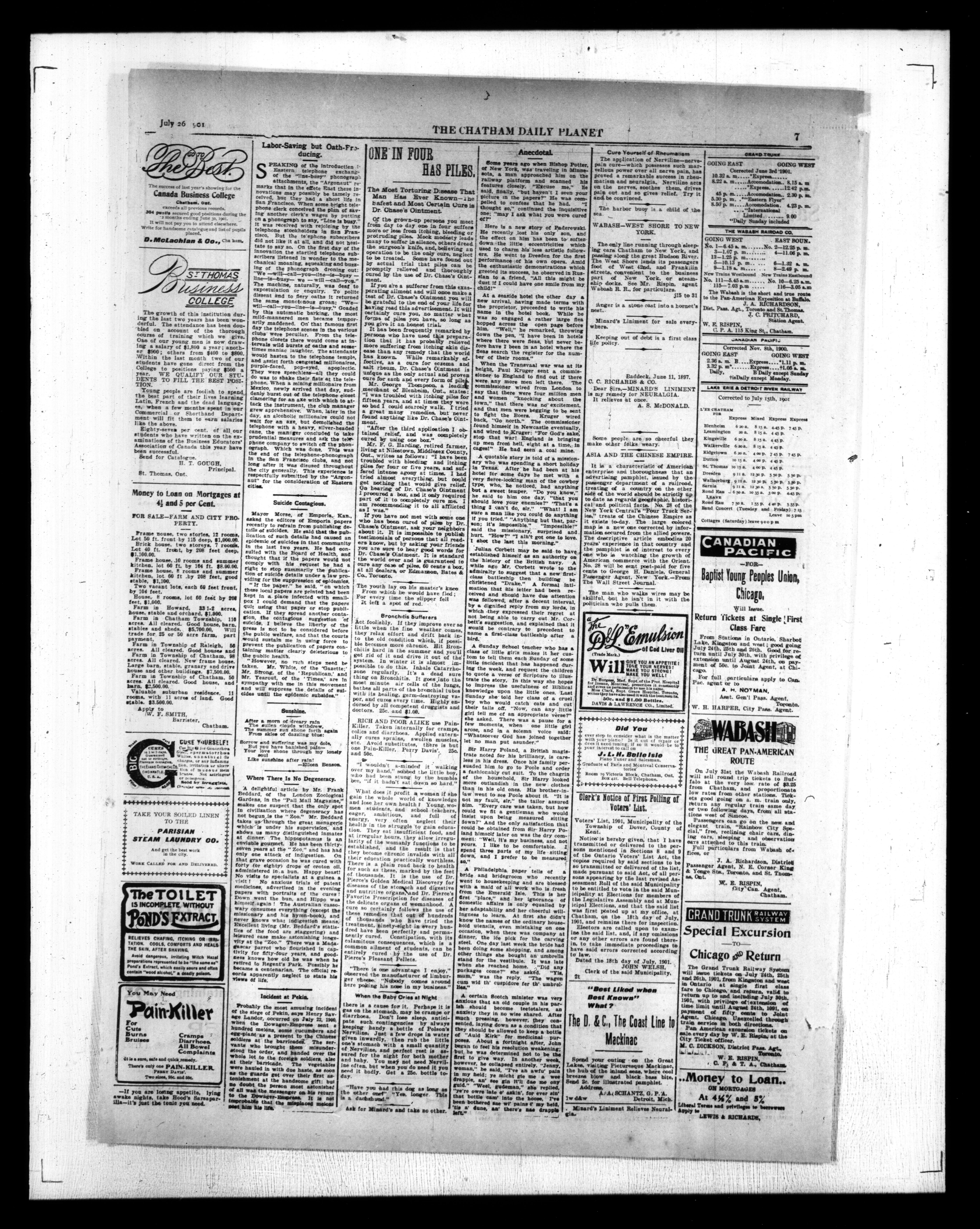 - The Chatham Daily Planet : Vol. X, No. 204 (July 26, 1901)