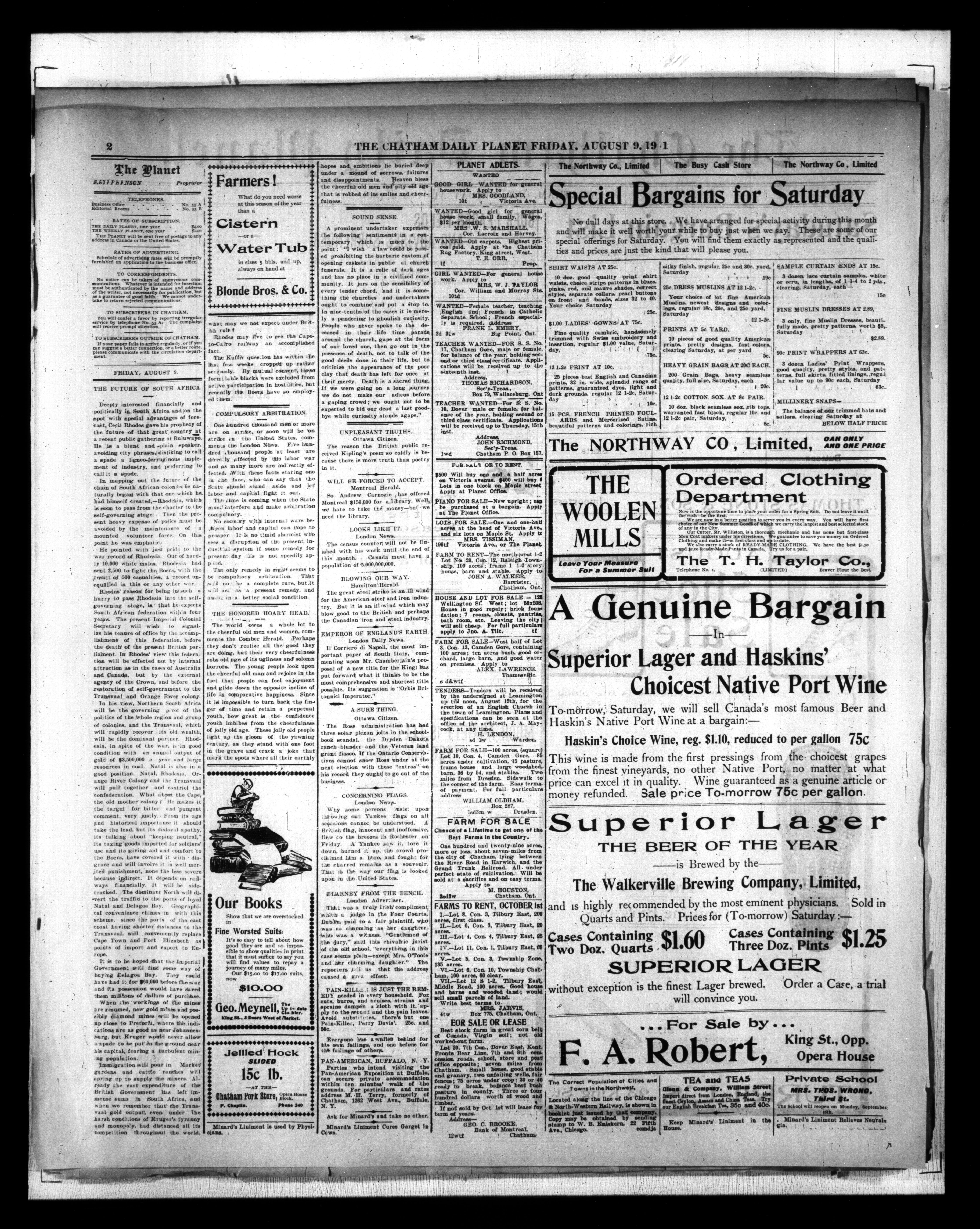 - The Chatham Daily Planet : Vol. X, No. 216 (August 9, 1901)