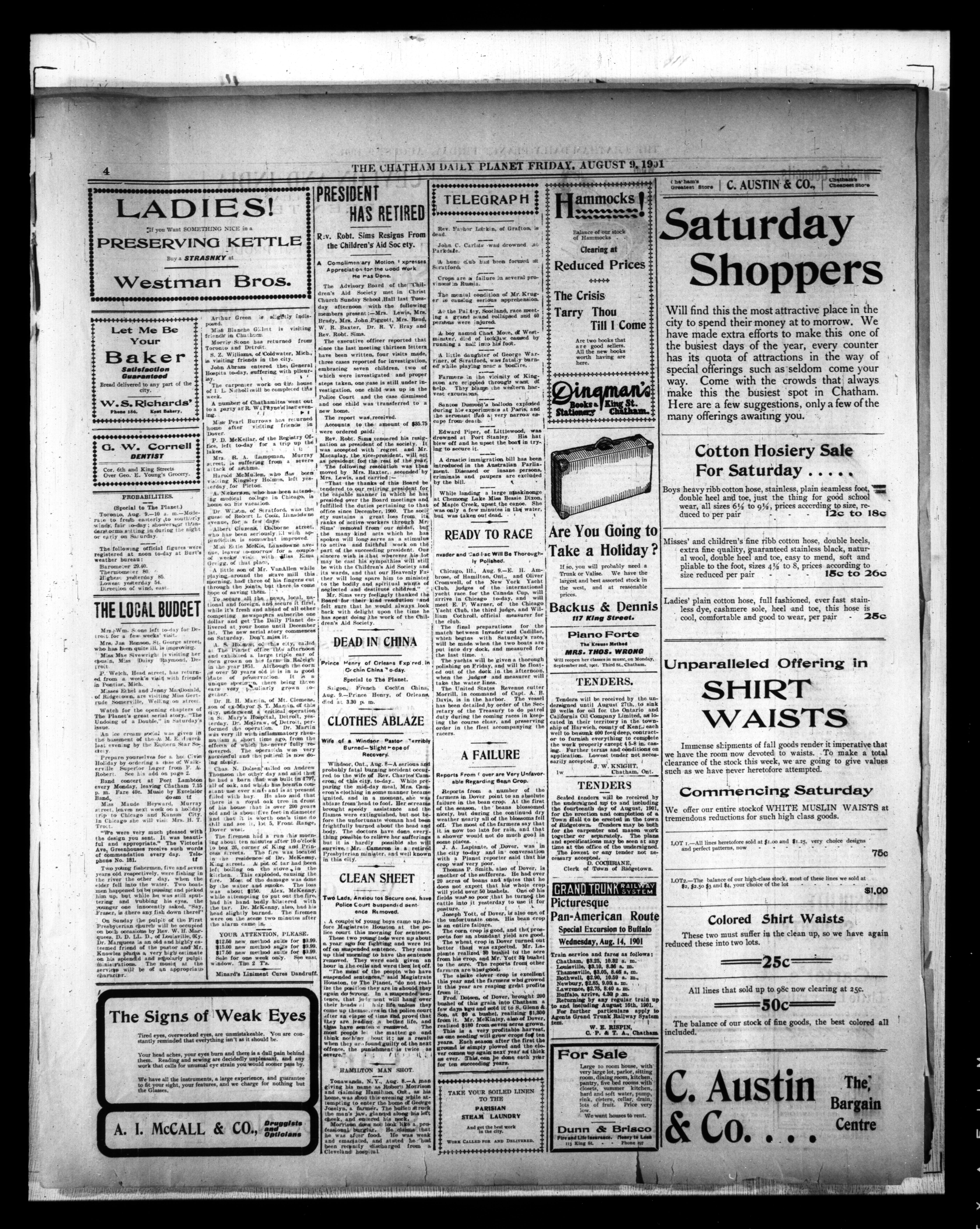 - The Chatham Daily Planet : Vol. X, No. 216 (August 9, 1901)