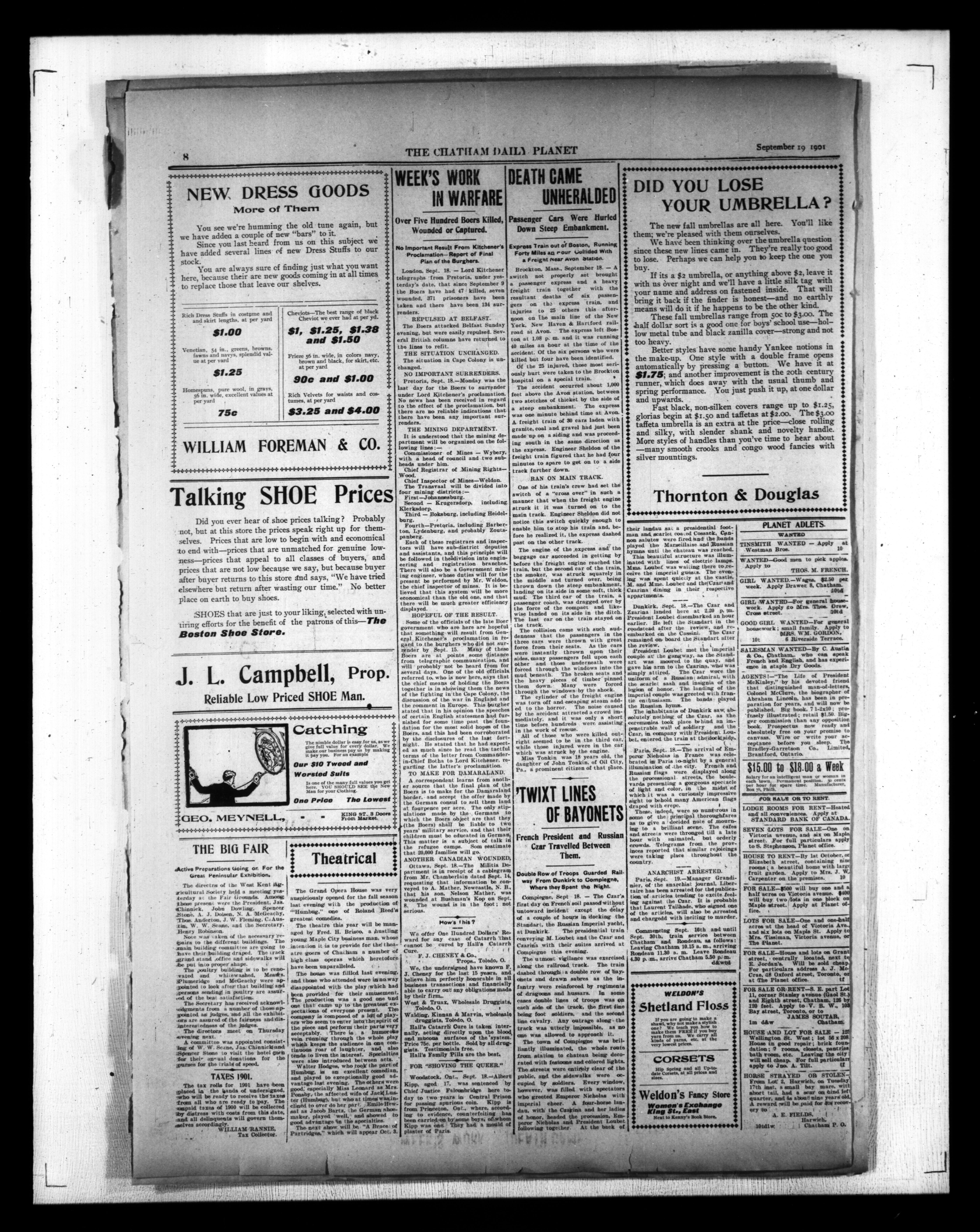 - The Chatham Daily Planet : Vol. X, No. 251 (September 19, 1901)