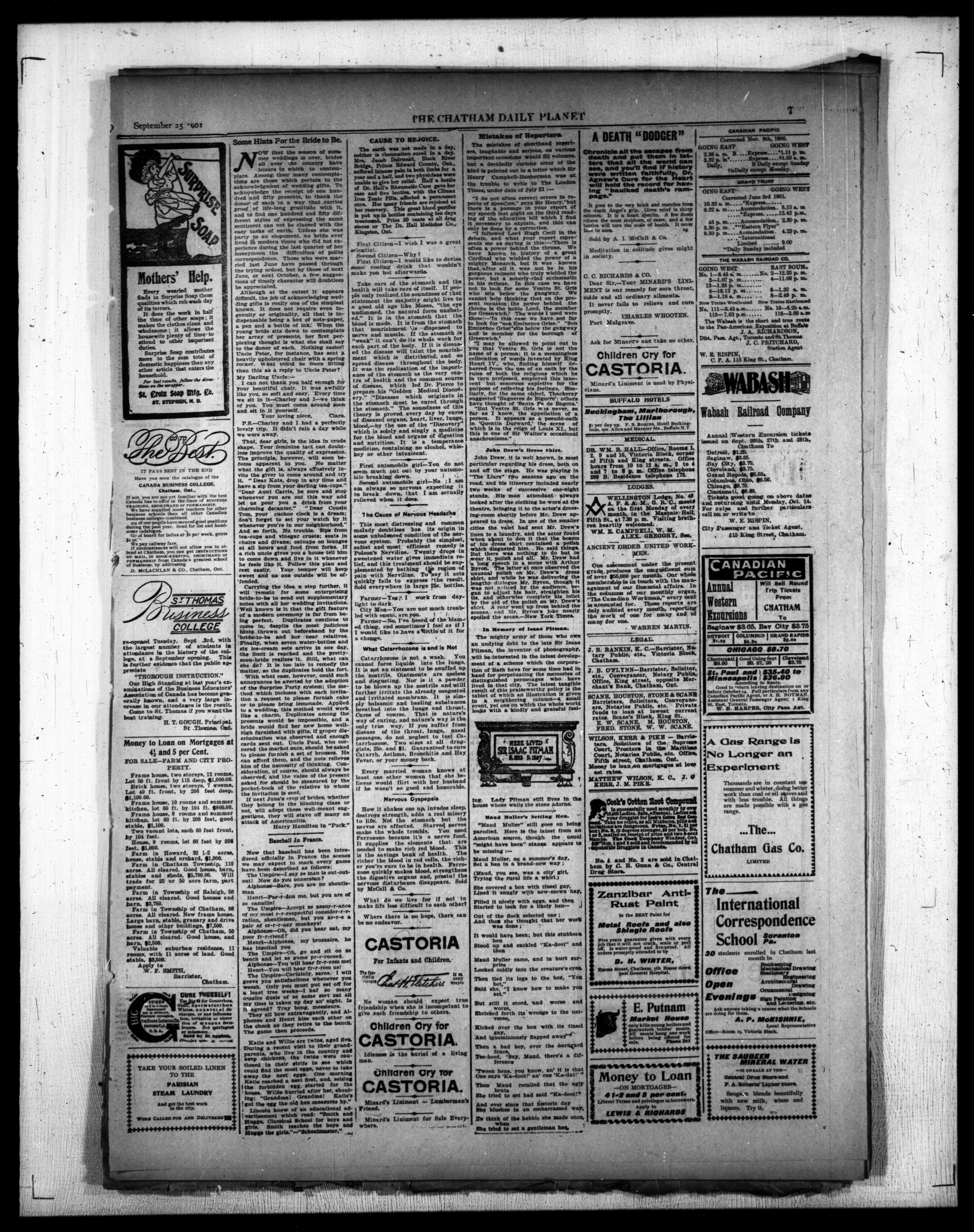 - The Chatham Daily Planet : Vol. X, No. 256 (September 25, 1901)