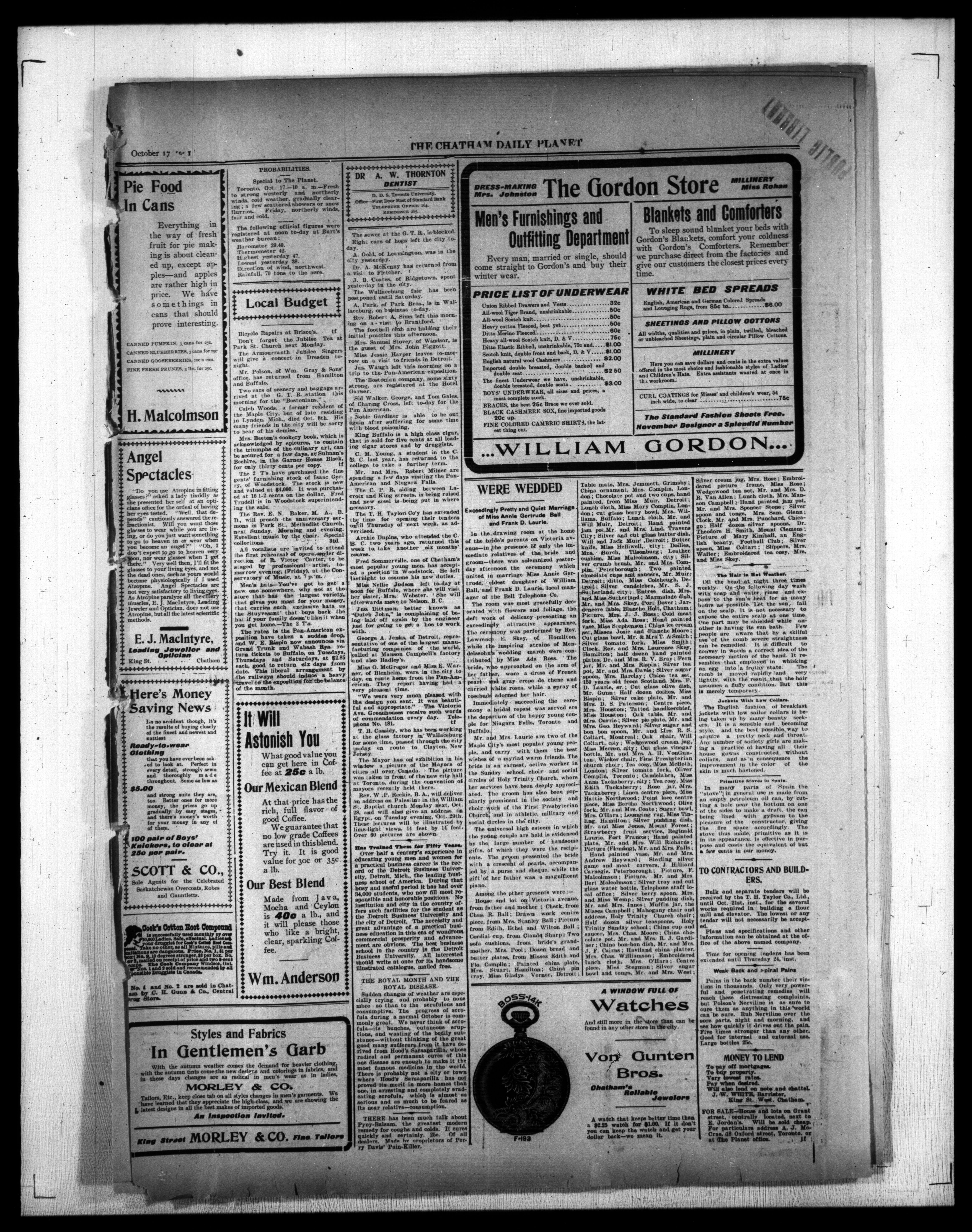 - The Chatham Daily Planet : Vol. X, No. 275 (October 17, 1901)
