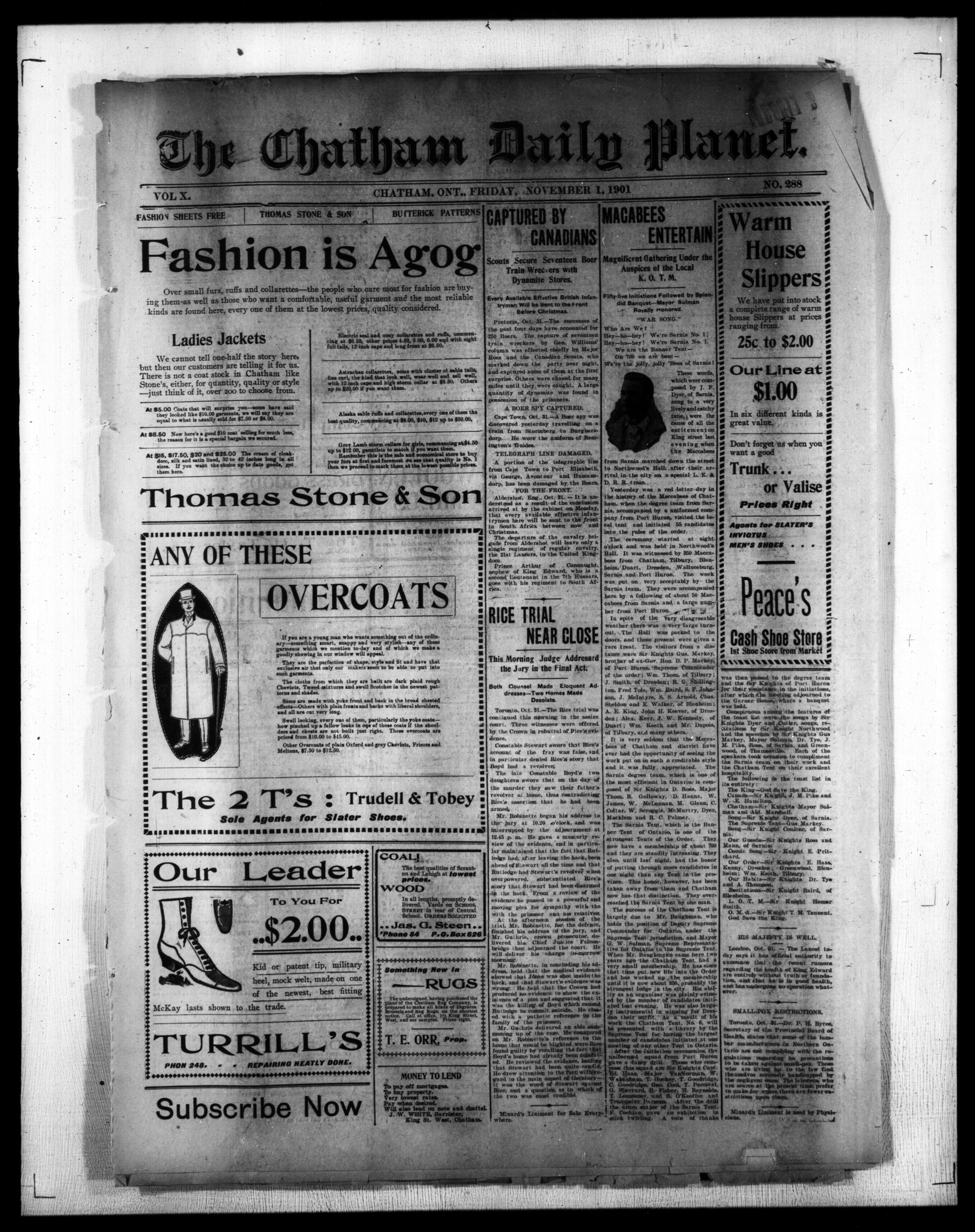 - The Chatham Daily Planet : Vol. X, No. 288 (November 1, 1901)