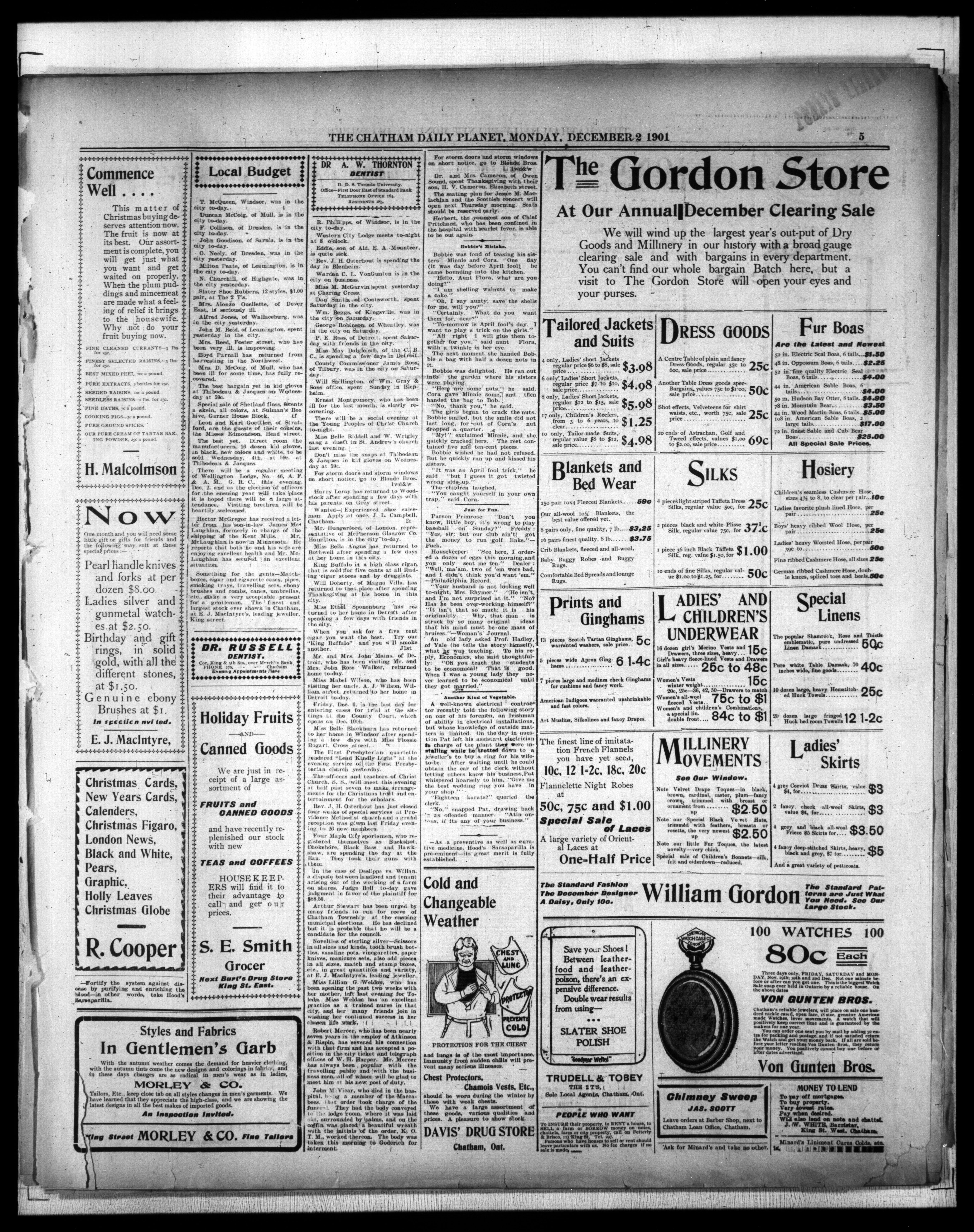 - The Chatham Daily Planet : Vol. X, No. 304 (December 2, 1901)
