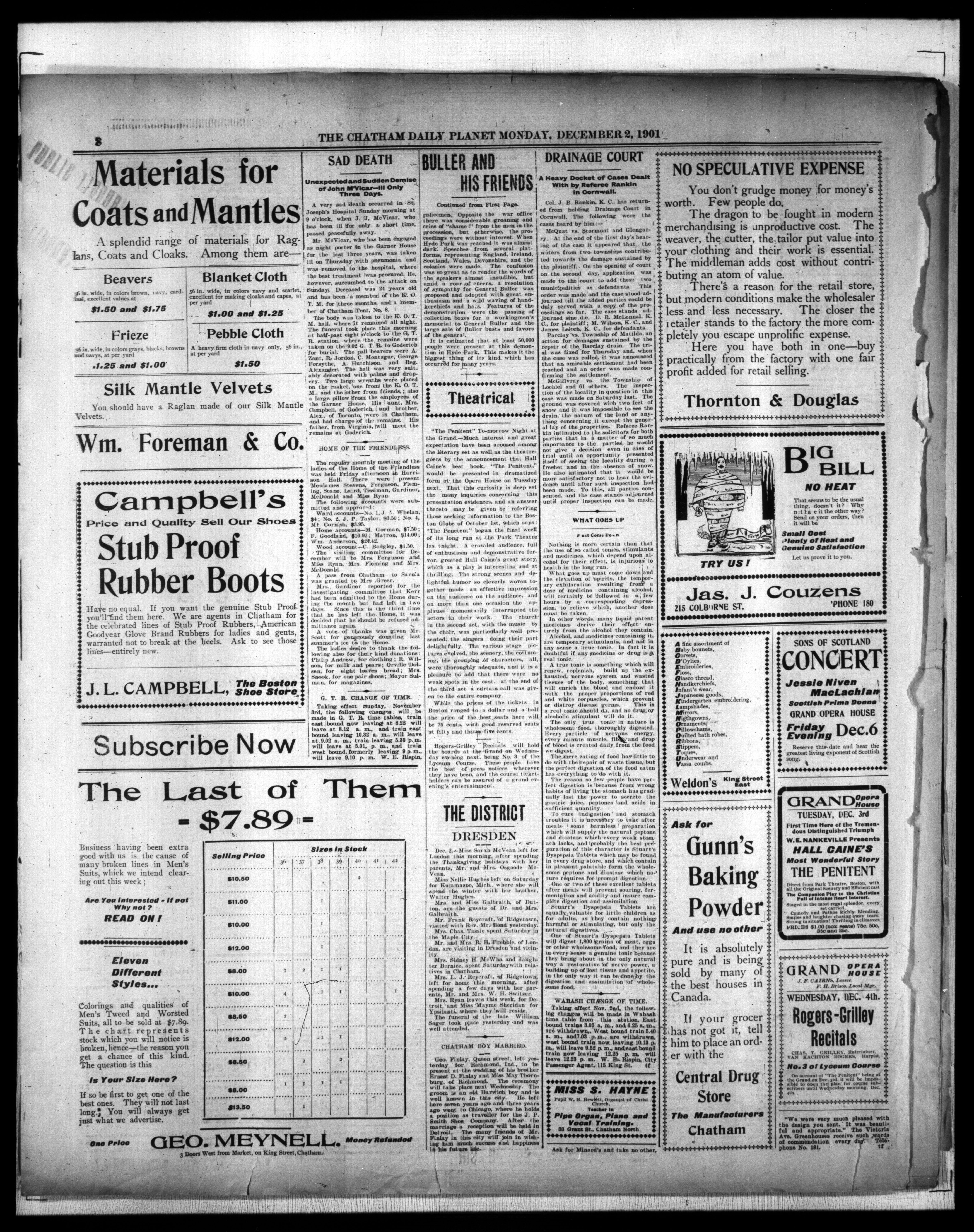 - The Chatham Daily Planet : Vol. X, No. 304 (December 2, 1901)