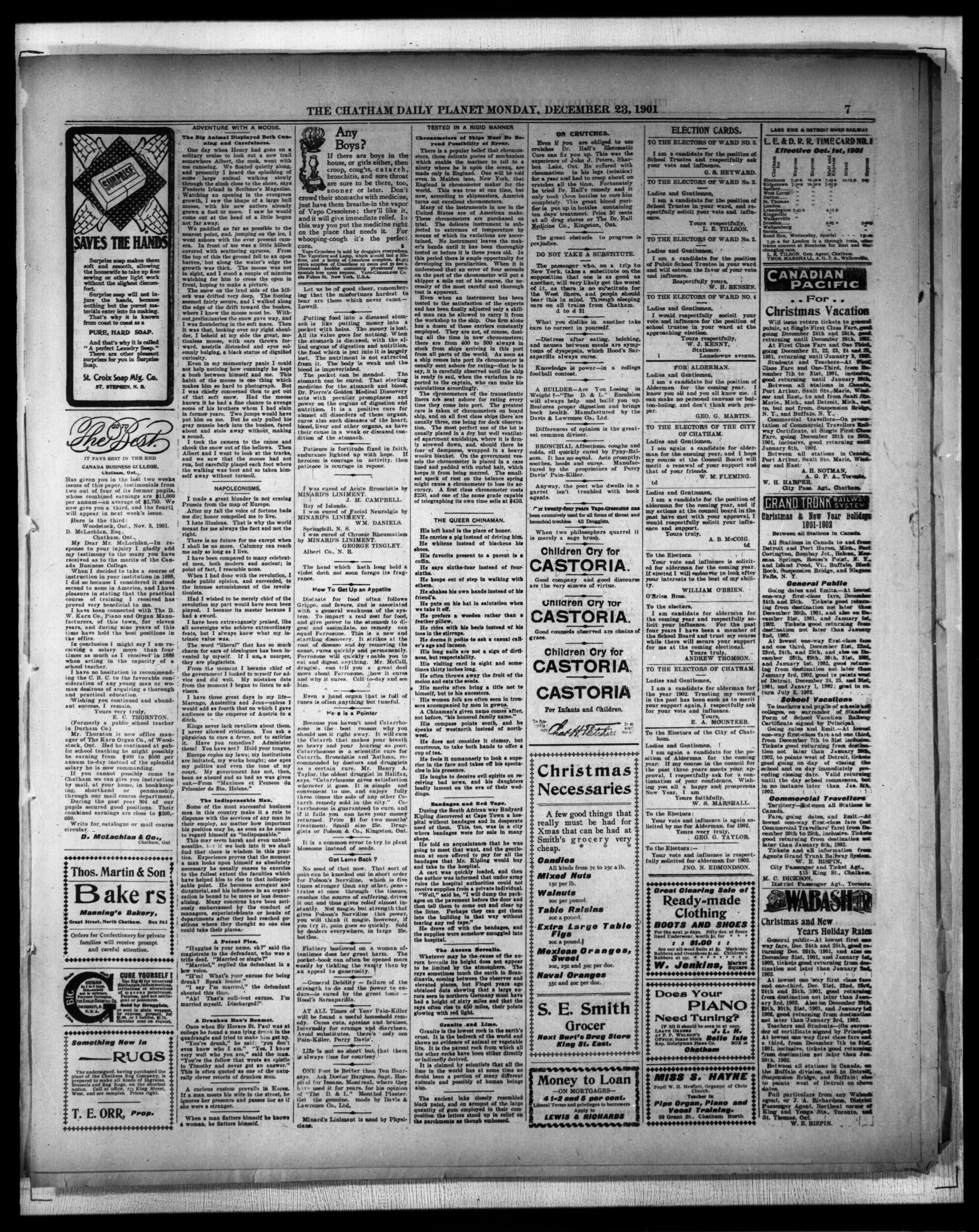 - The Chatham Daily Planet : Vol. XI, No. 8 (December 23, 1901)