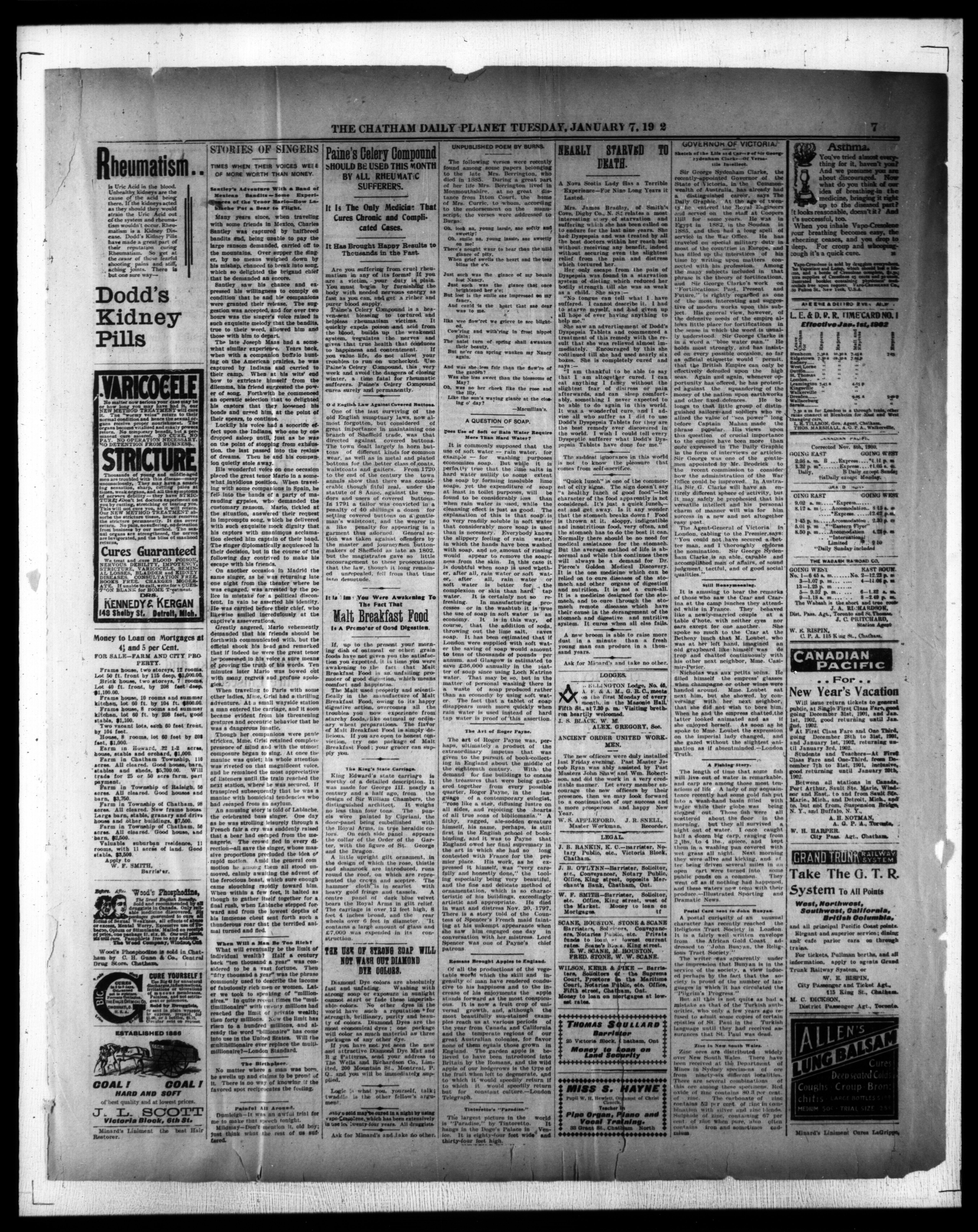 - The Chatham Daily Planet : Vol. XI, No. 21 (January 7, 1902)